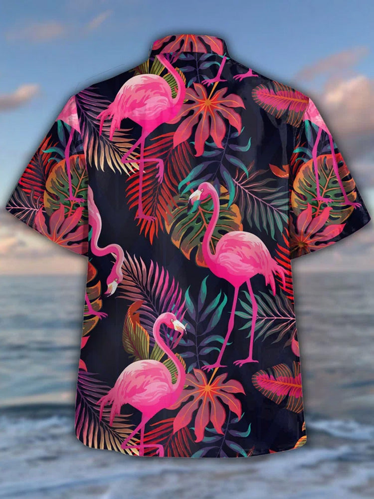 Eye-Catching Full-Print Casual Flamingo Printing Cuban Collar Hawaiian Short Sleeve Shirt