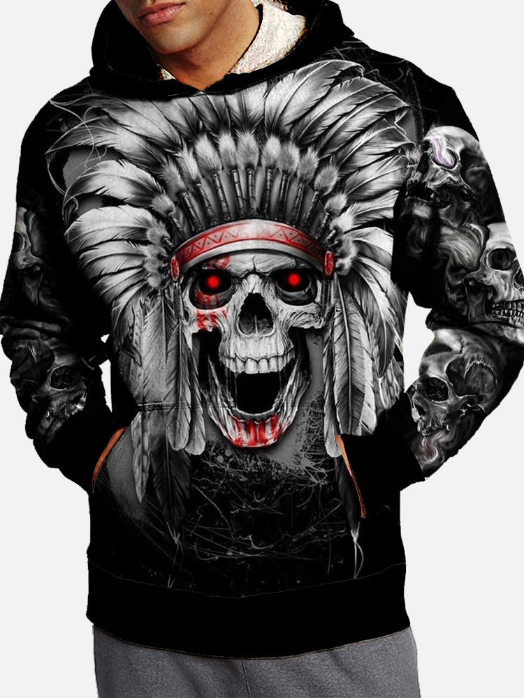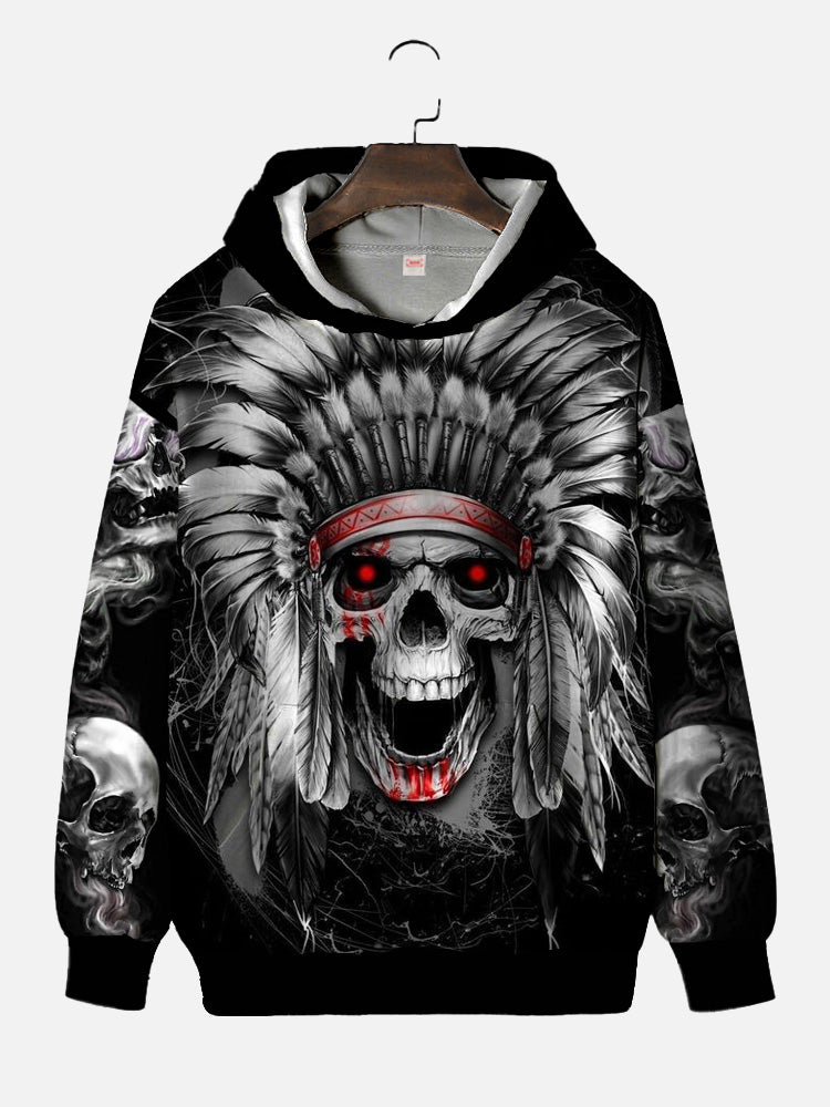 Fashion Indian Art Samurai Skull Printing Hooded Sweatshirt
