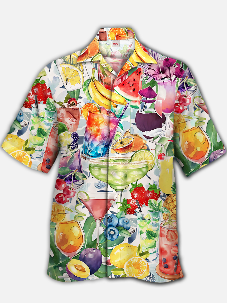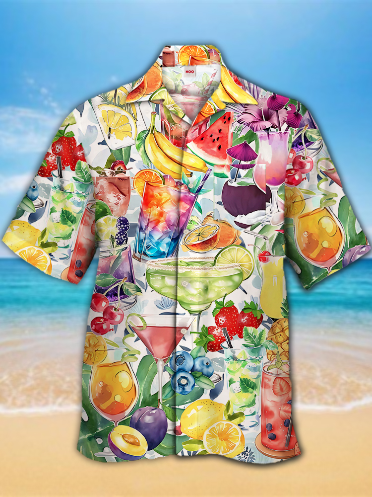 Eye-Catching Refreshing Summer Drinks Colorful Cocktails Printing Cuban Collar Hawaiian Short Sleeve Shirt