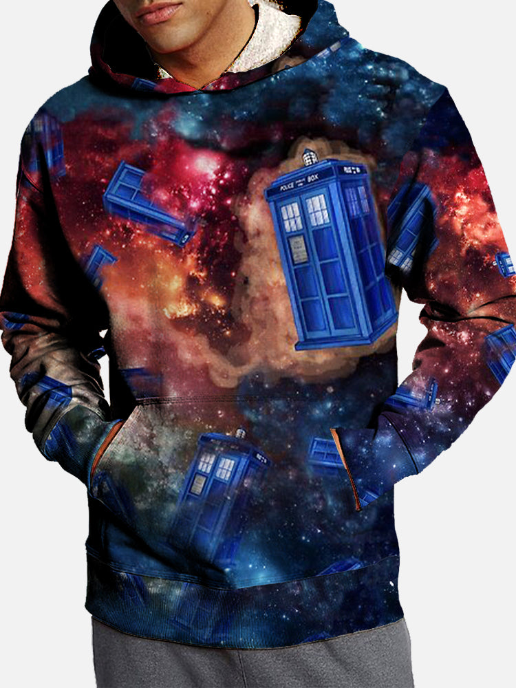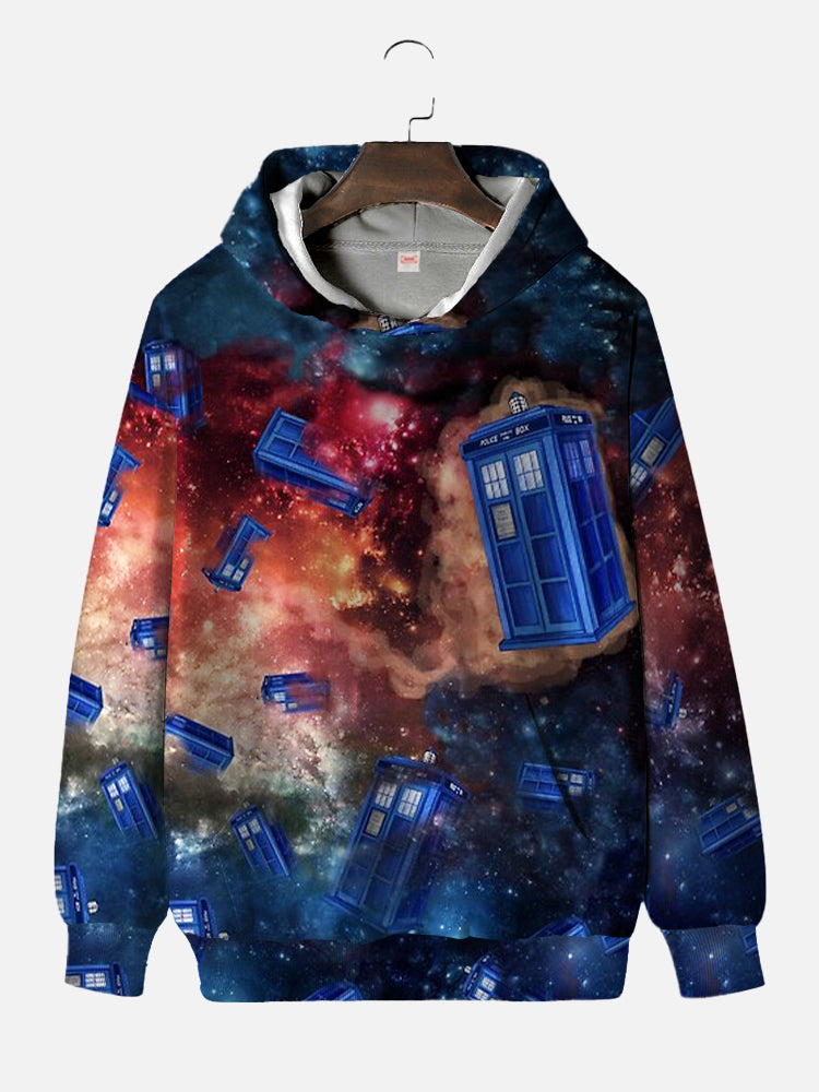 Fantasy Science Fiction Space Floating Time Travel Boxes Printing Hooded Sweatshirt