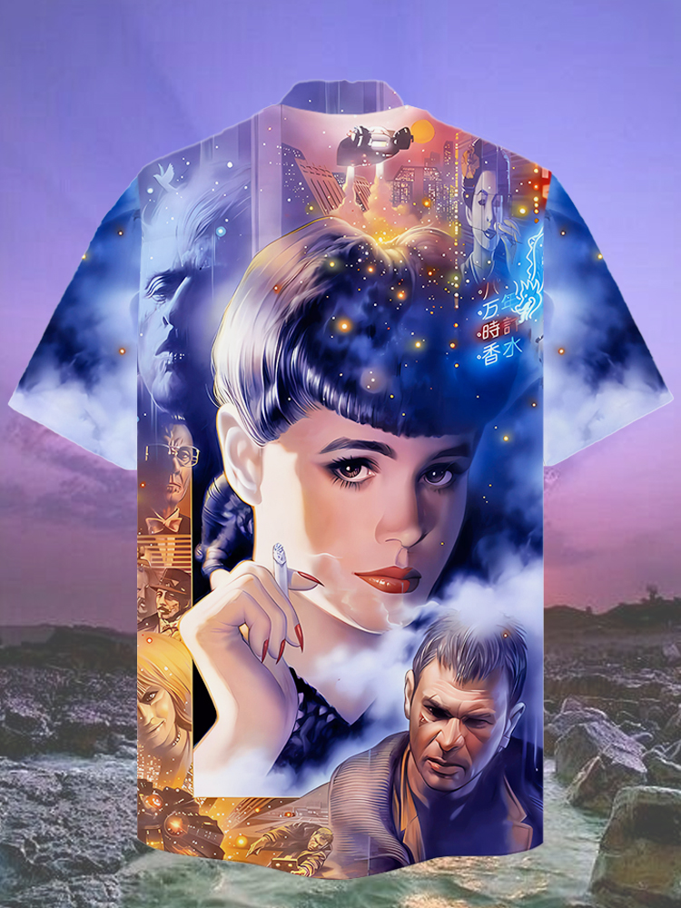 Eye-Catching Sci-Fi Classic Character Beauty Printing Cuban Collar Hawaiian Short Sleeve Shirt