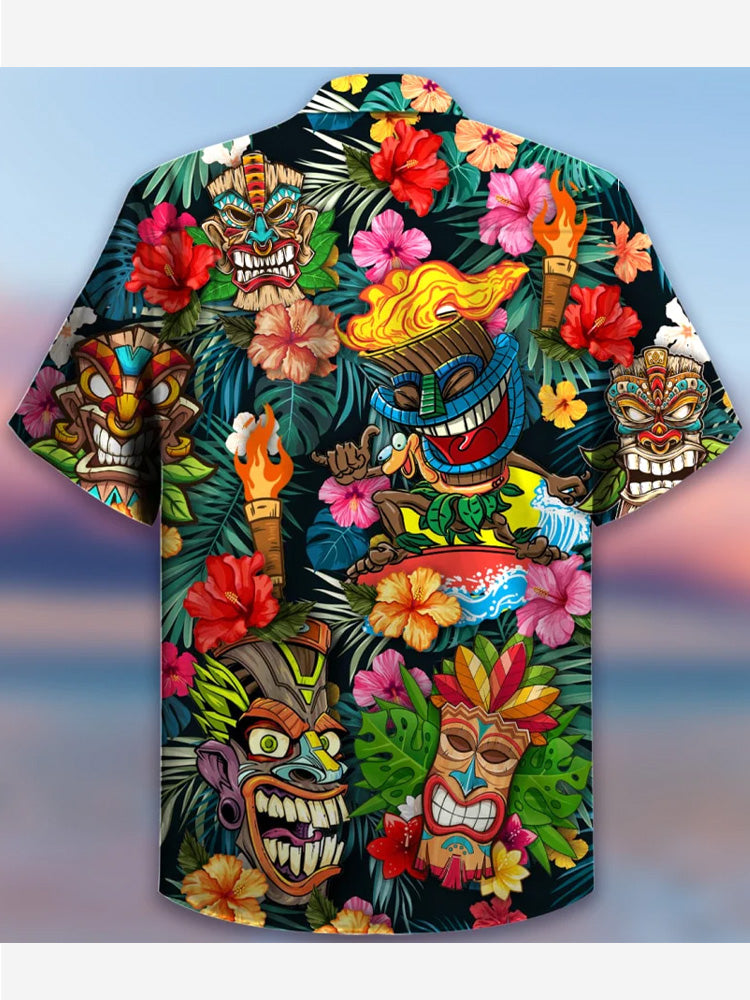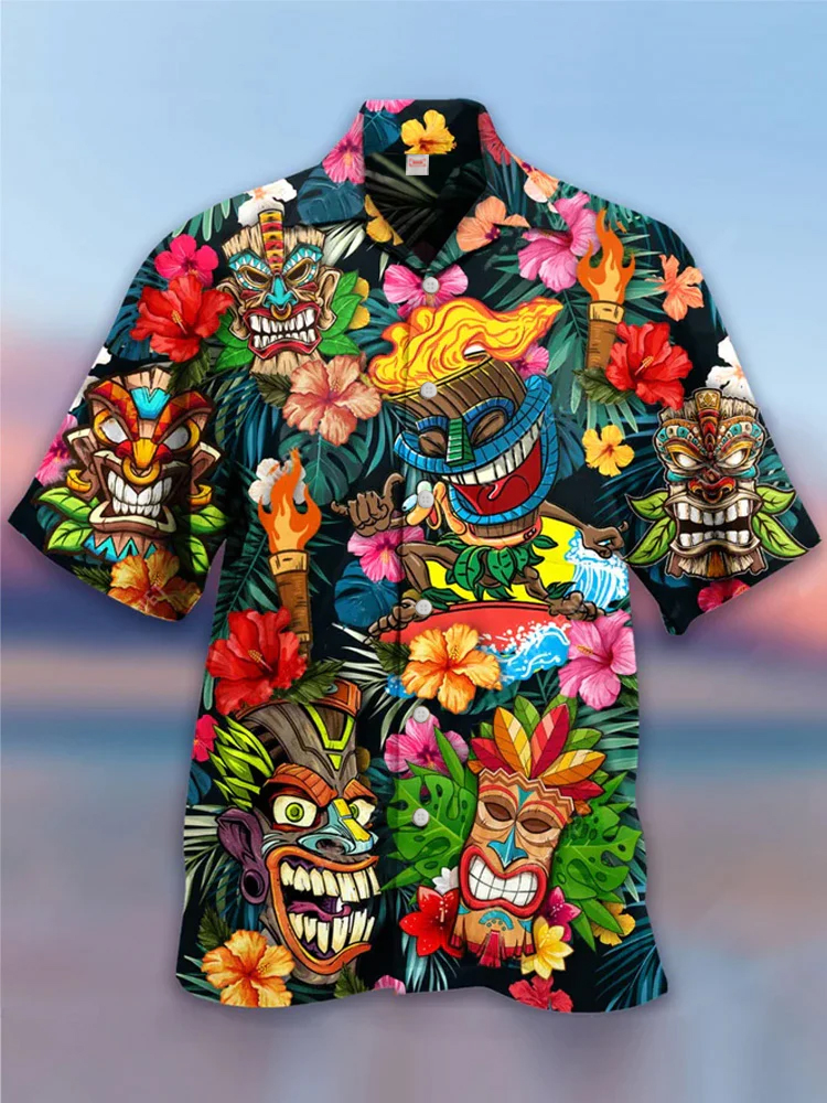 Eye-Catching trendy Cool Carnival Fashion Hawaiian Cuban Collar Short Sleeve Shirt
