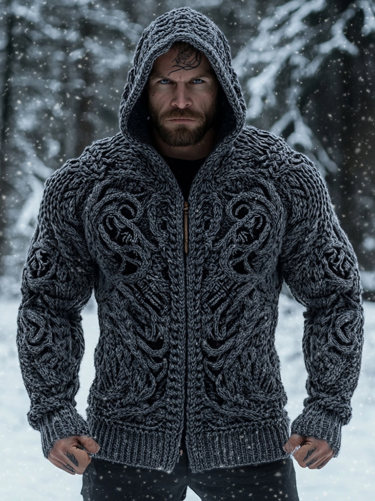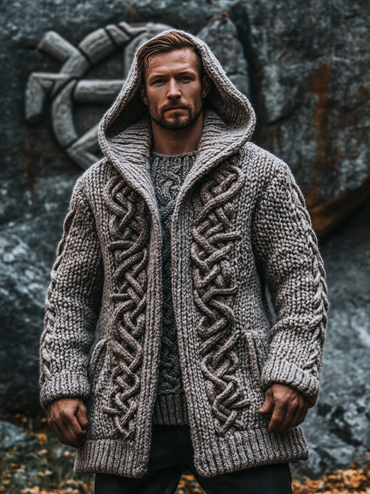 Men's Viking Art Celtic Chunky Hooded Cardigan