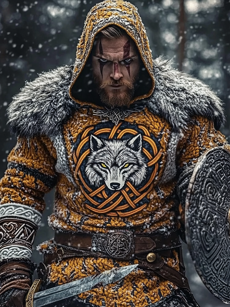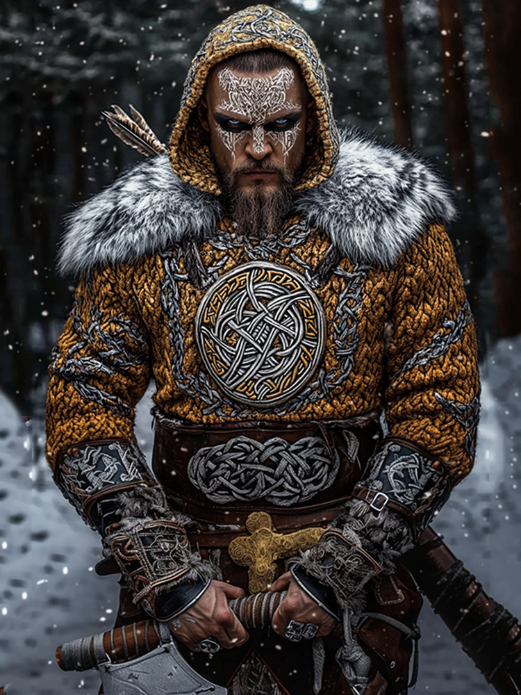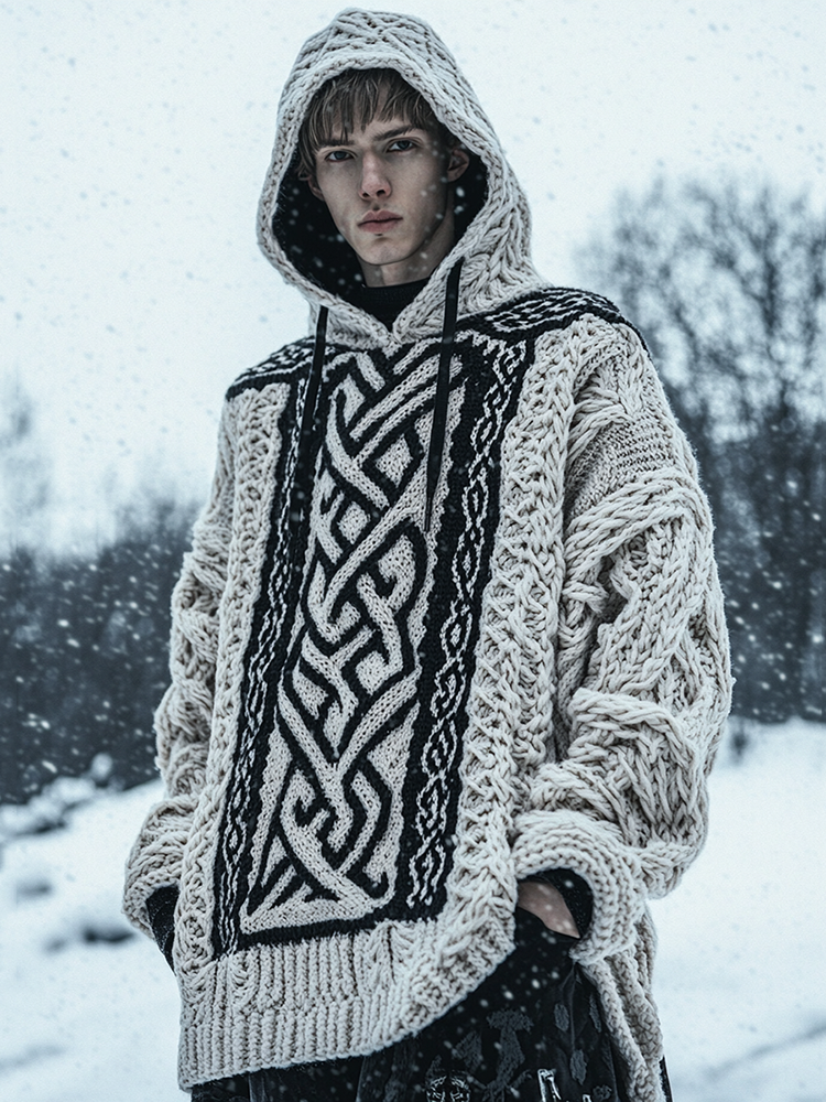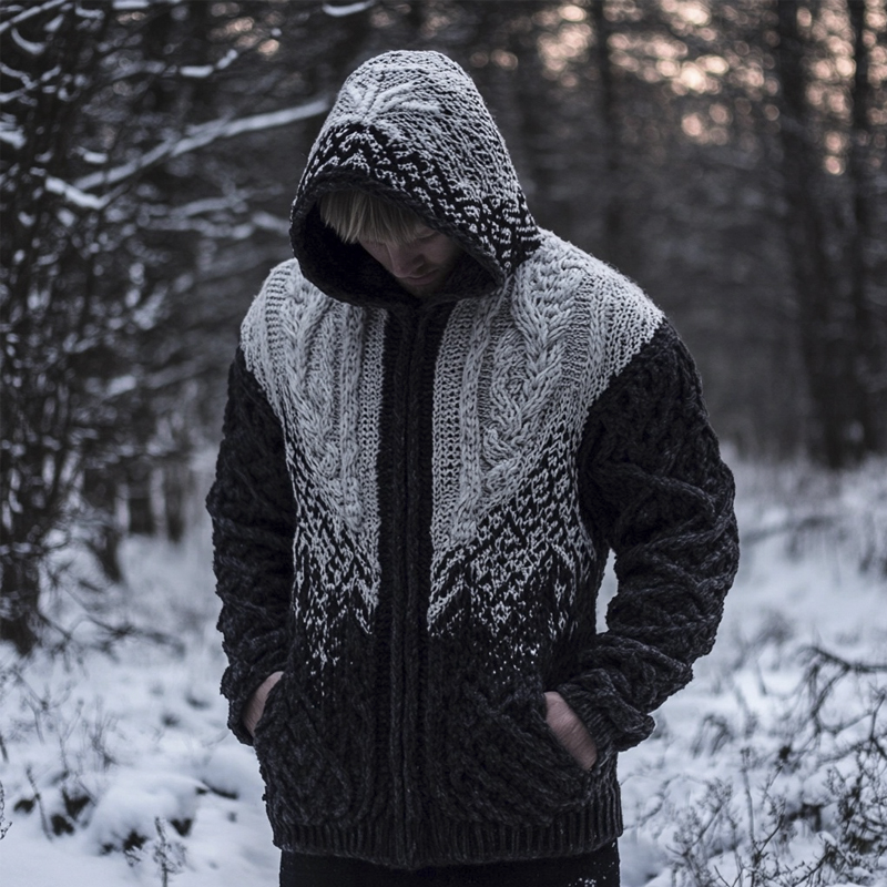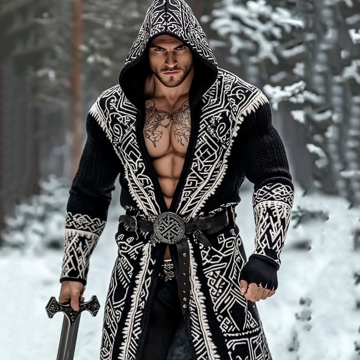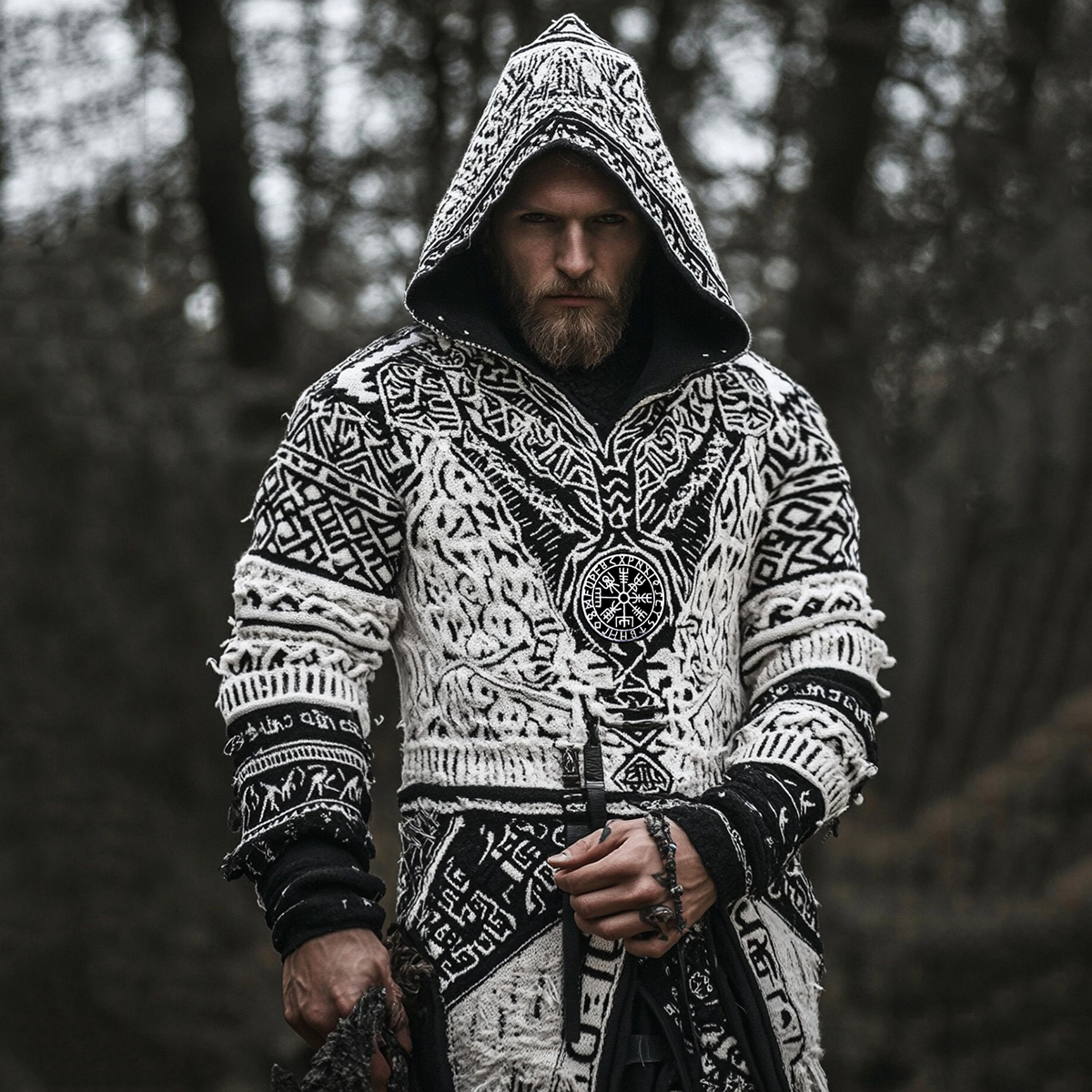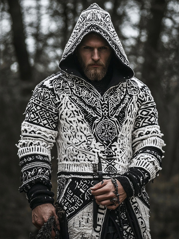 Men's Vintage Viking Inspired Jacquard Cozy Hooded Sweater