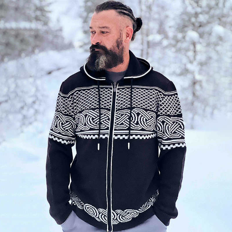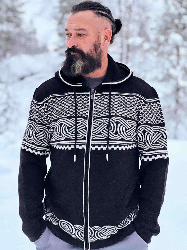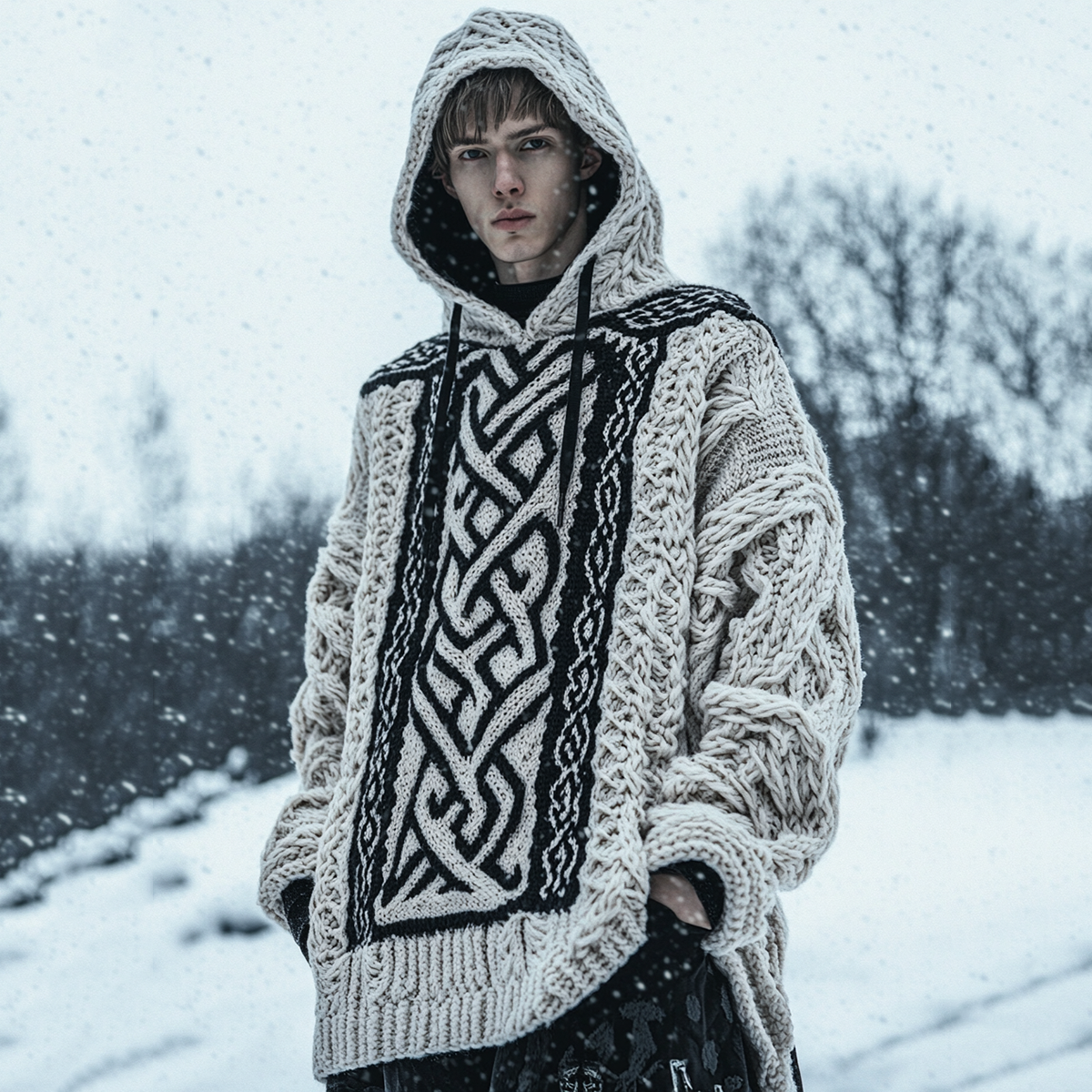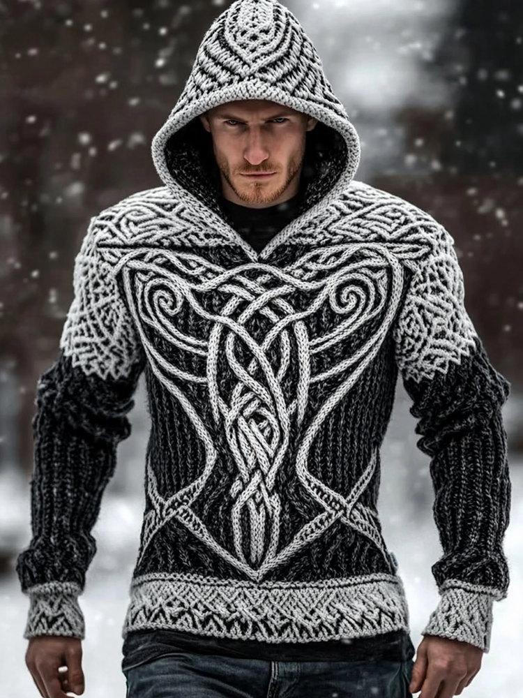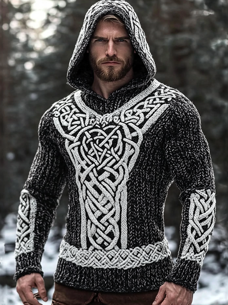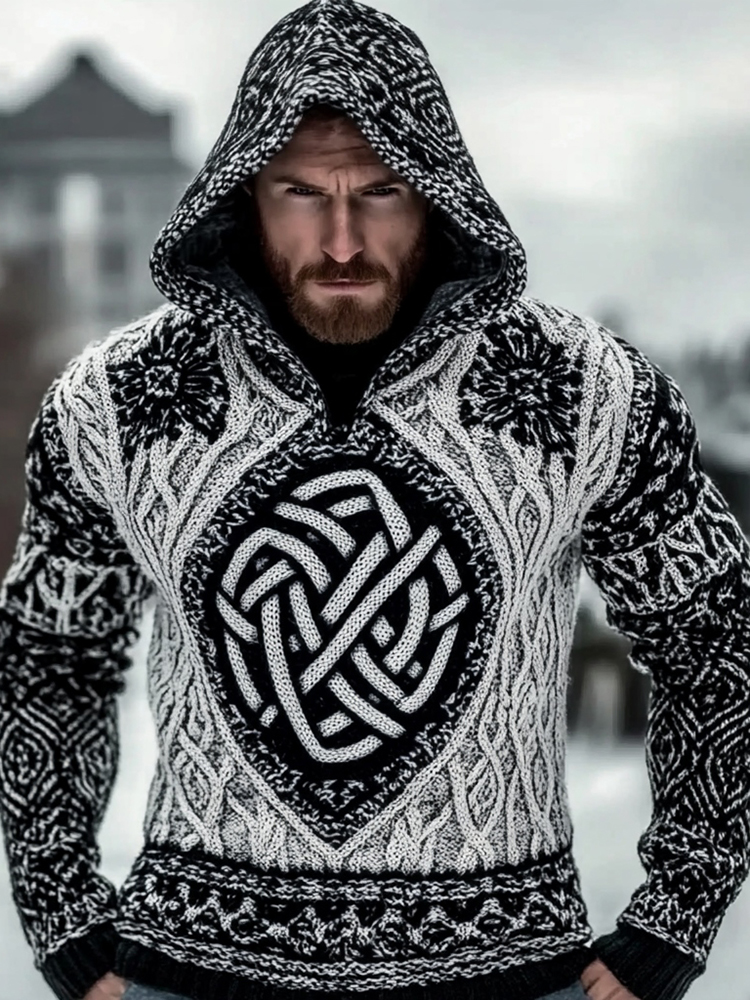 Men's Viking Art Jacquard Celtic Cozy Hooded Sweater