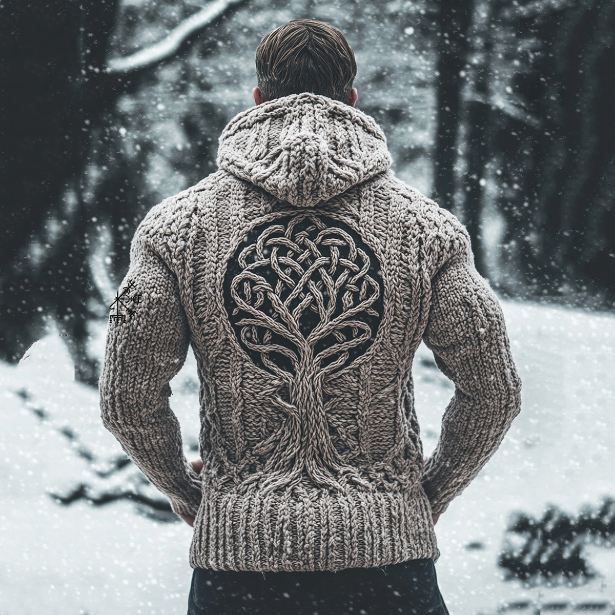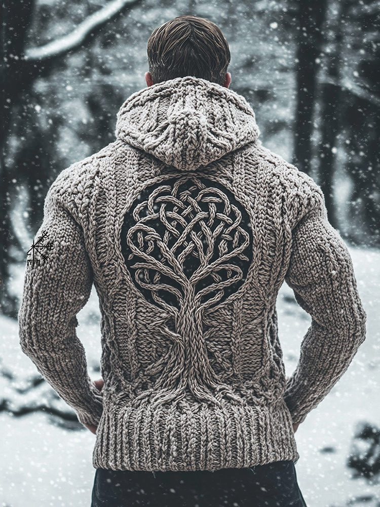 Men's Viking Tree Of Life Celtic Style Knitted Hooded Sweater