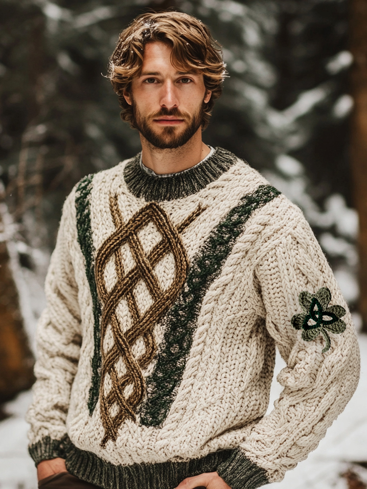 Men's Shamrock Celtic Jacquard Contrast Color Sweater