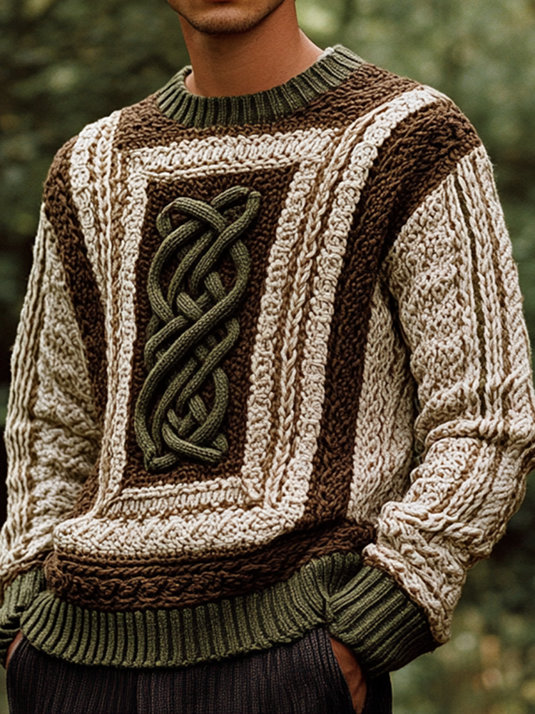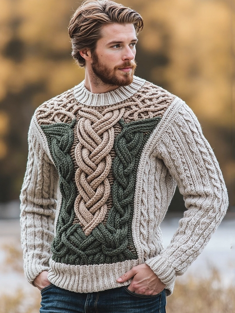 Men's Irish Celtic Knotted Shamrock Knitting Jacquard Sweater