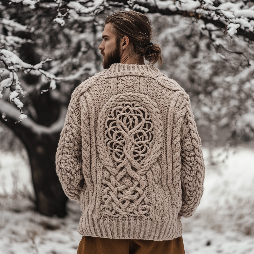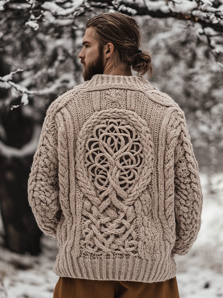 Men's Viking Tree Of Life Inspired Celtic Chunky Cardigan
