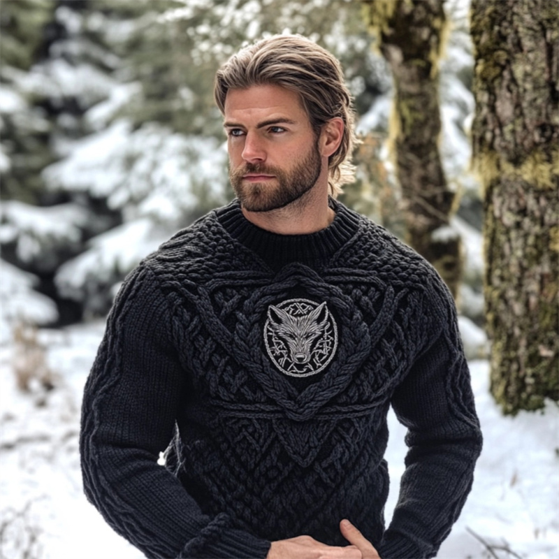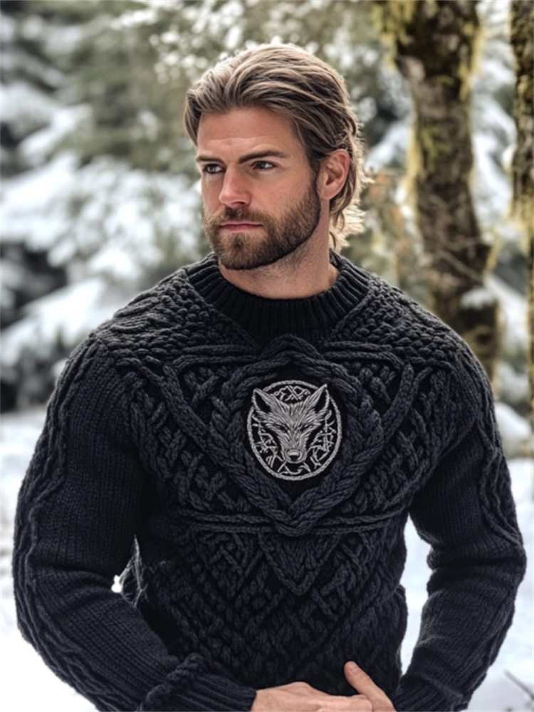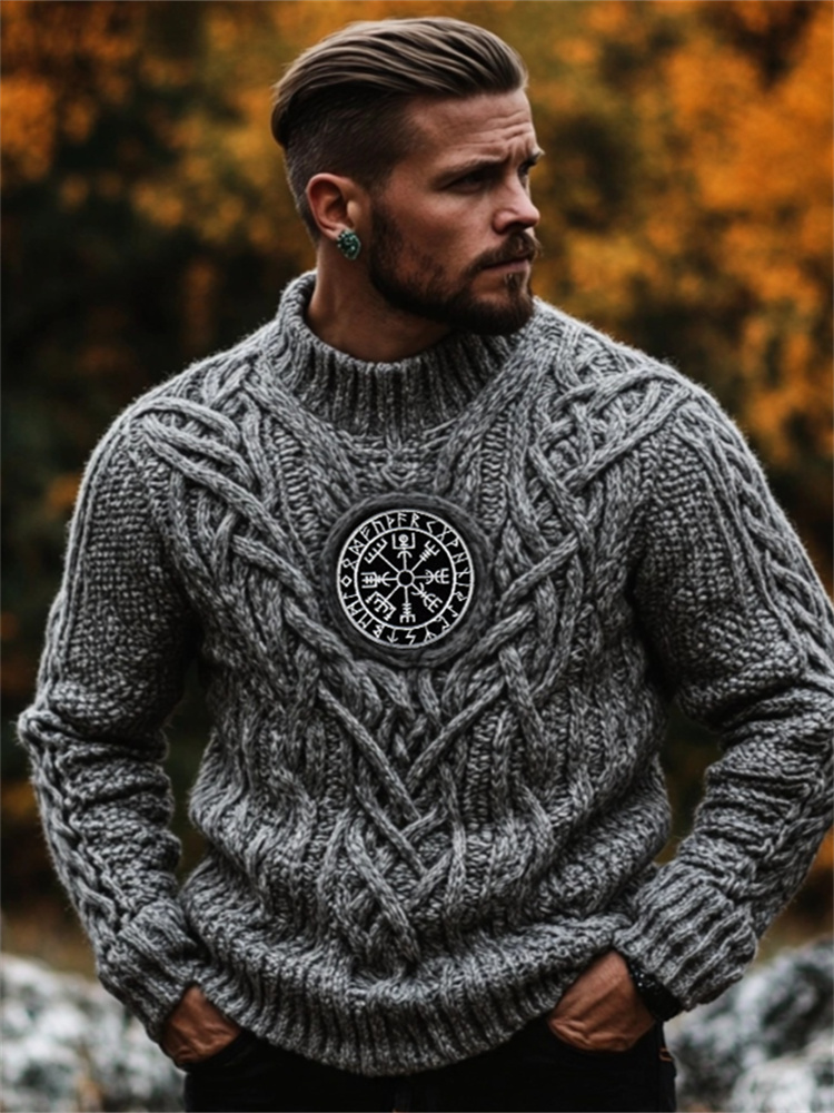 Men's Viking Rune Jacquard Celtic Knit Sweater