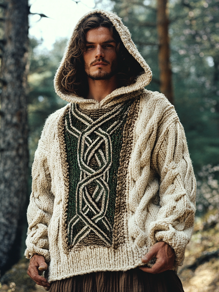 Men's Vintage Viking Inspired Celtic Knot Knit Hooded Sweater