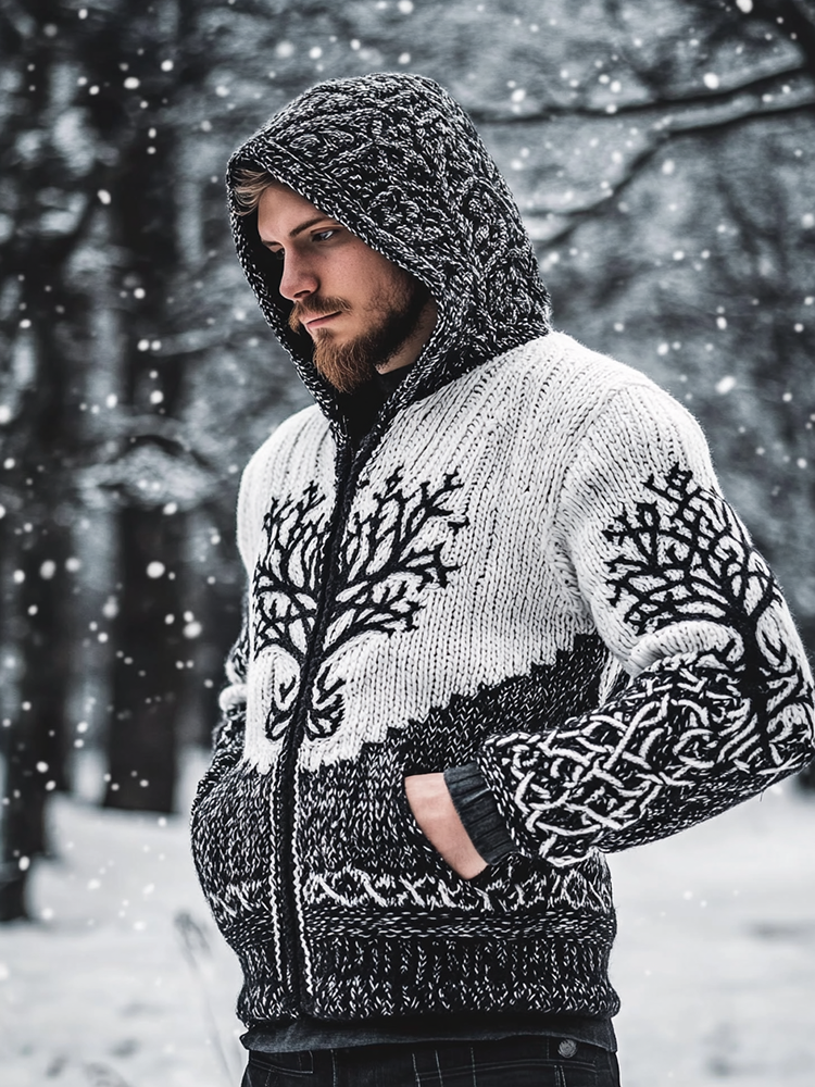 Men's Viking Tree Of Life Jacquard Celtic Style Knitted Hooded Sweater
