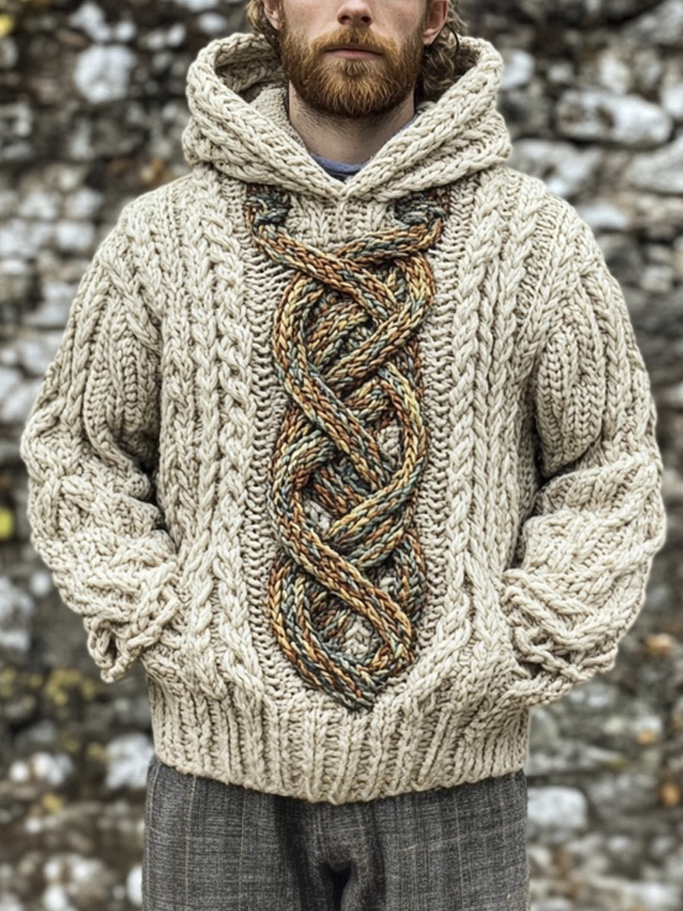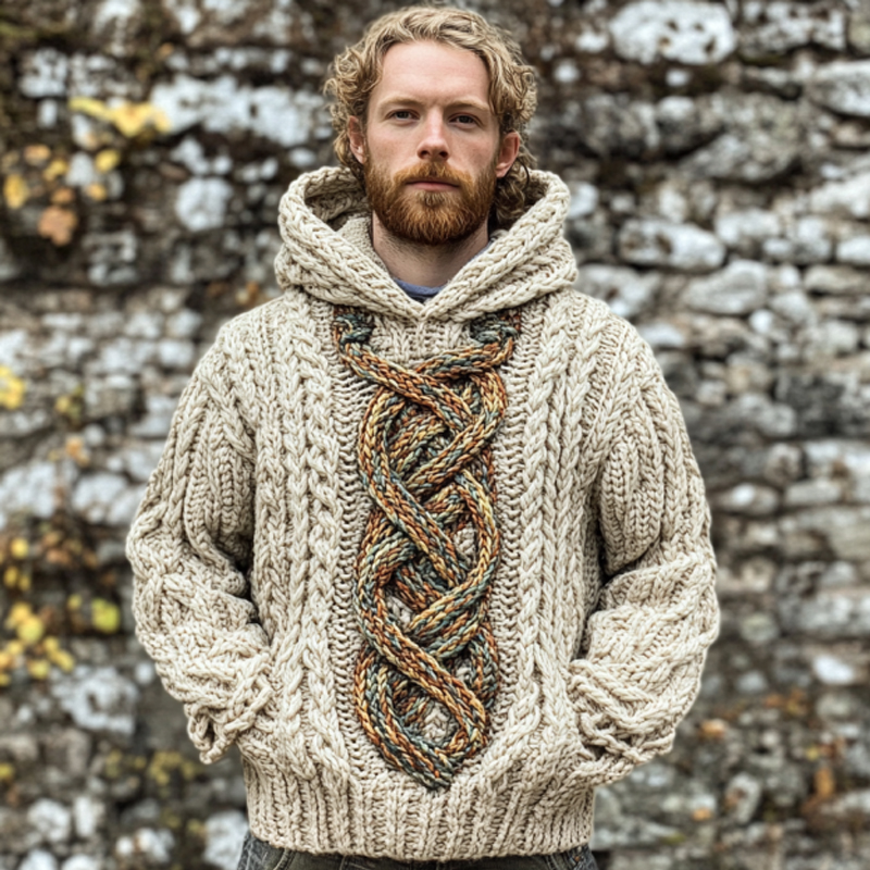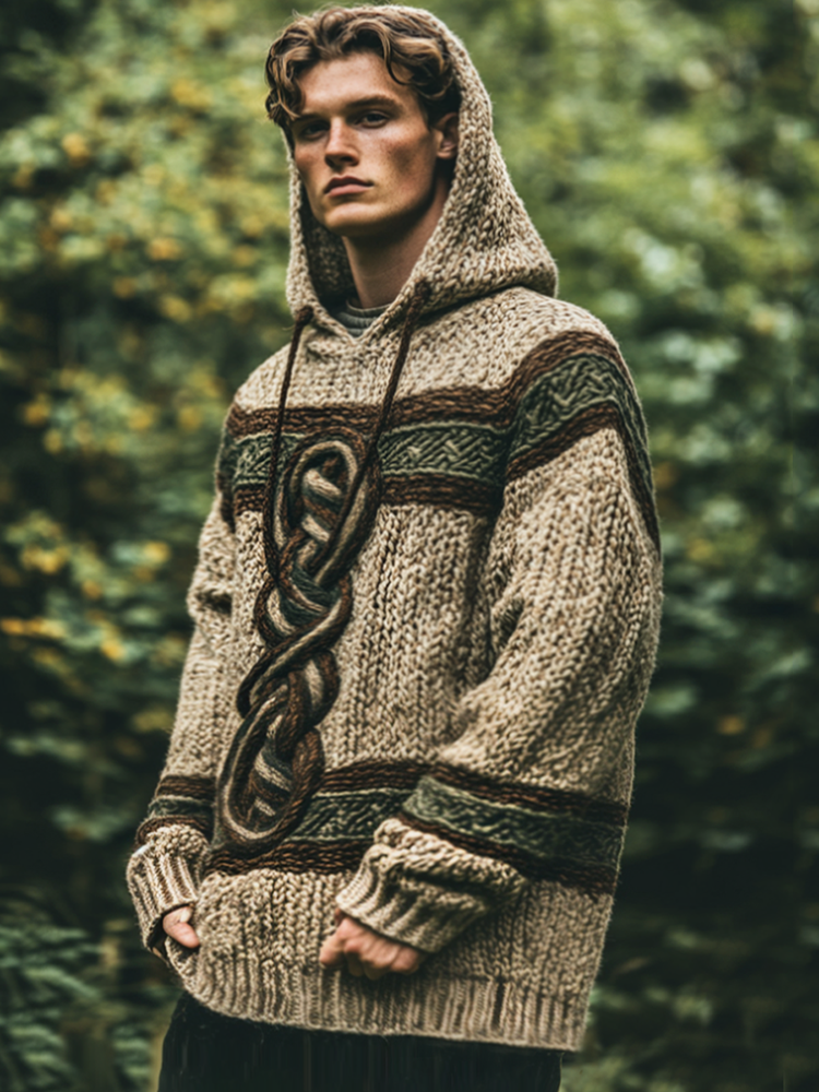 Celtic Knot Knit Pattern Men's Hooded Sweater
