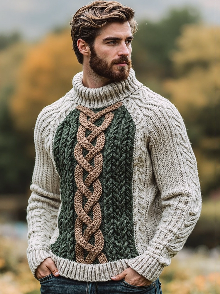 Men's Vintage Chunky Knit Jacquard Aran Sweater