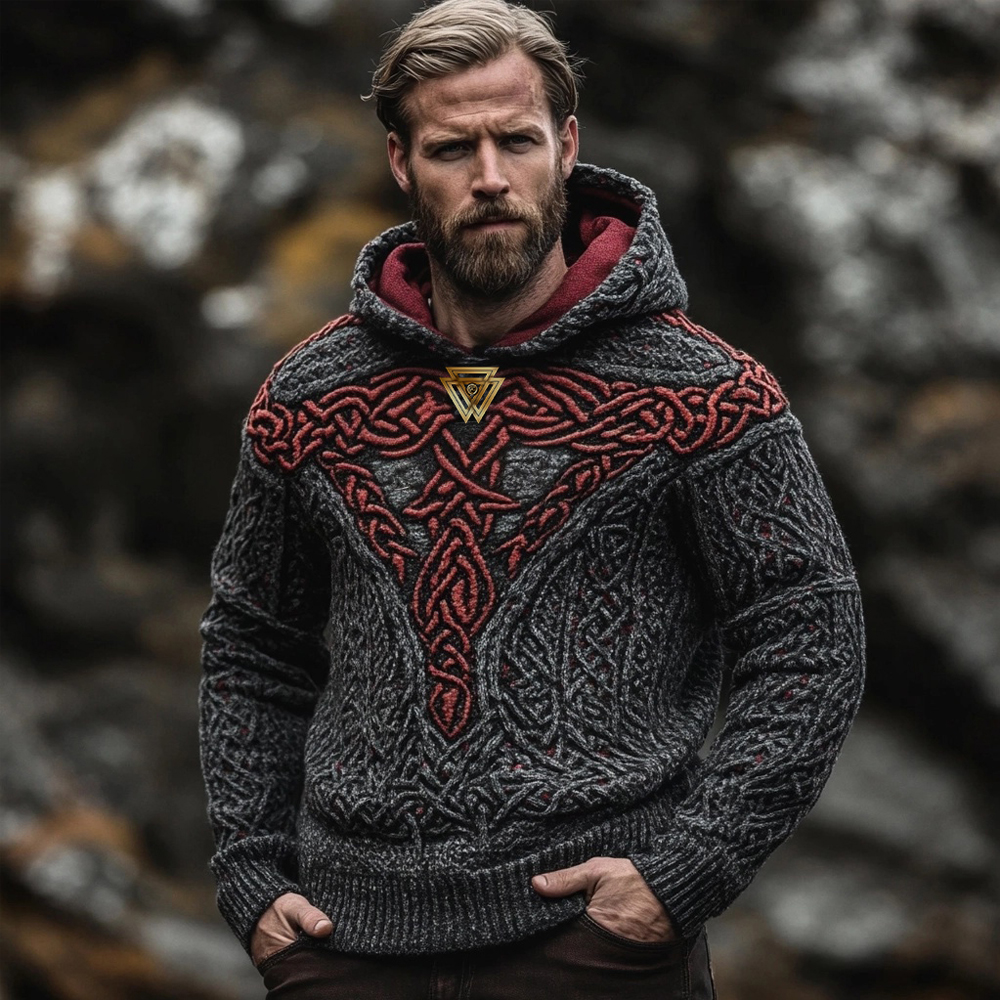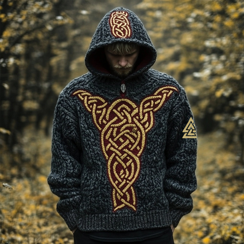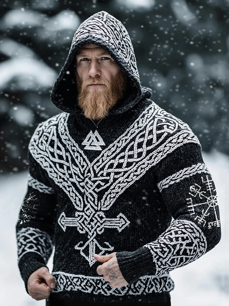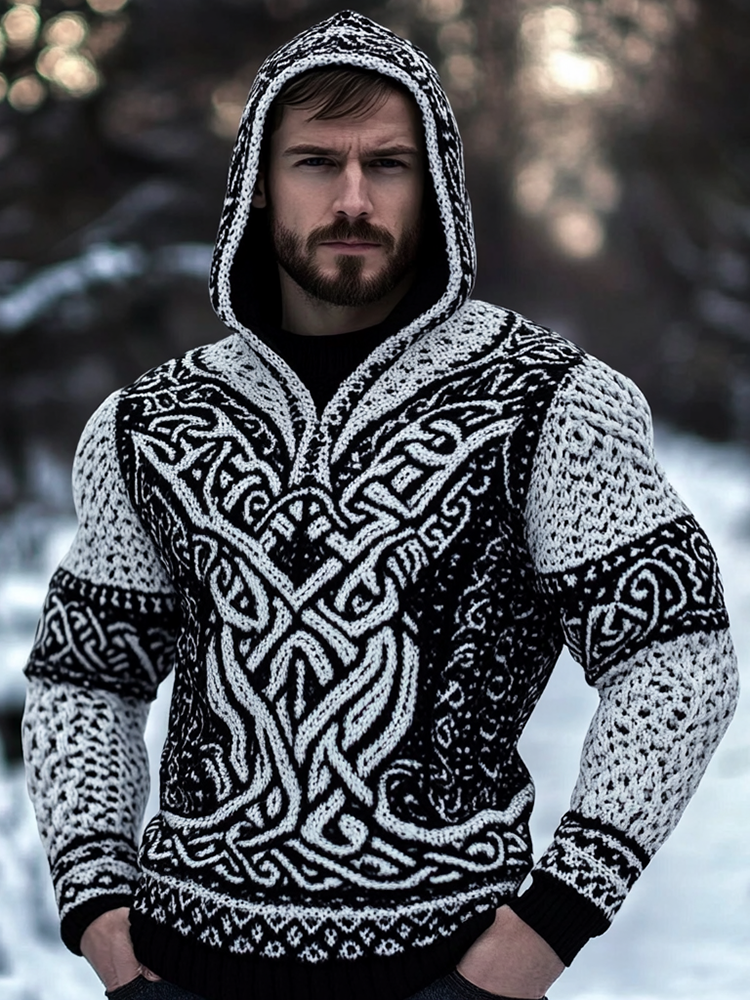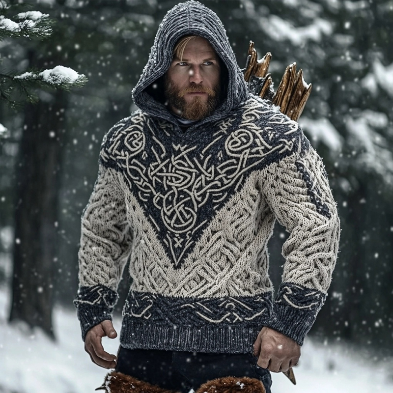Men's Vintage Viking Inspired Celtic Jacquard Hooded Sweater