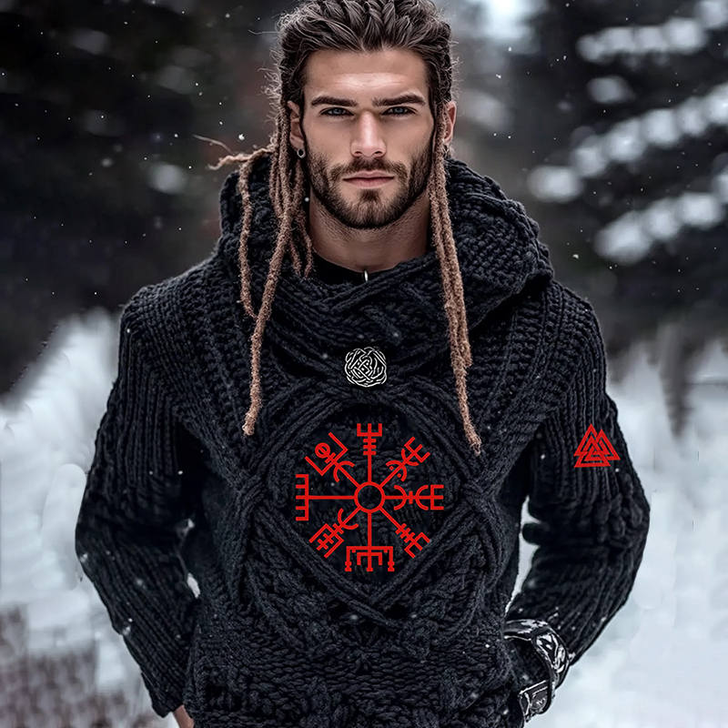 Men's Viking Vegvisir Celtic Chunky Hooded Sweater