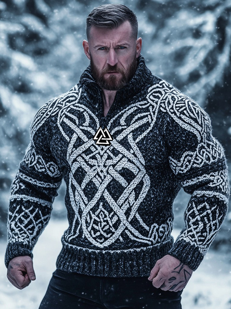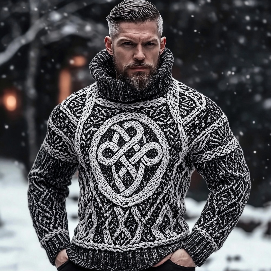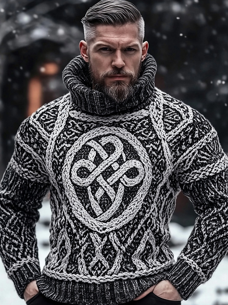 Men's Viking Celtic Pattern Cozy Knit Turtleneck Sweater