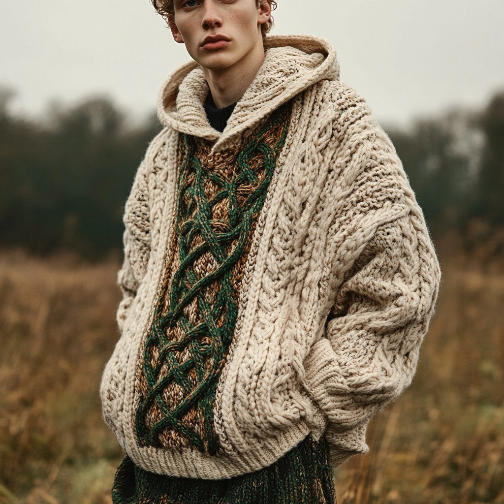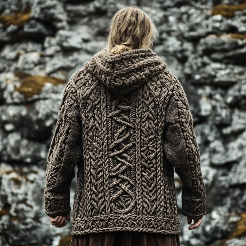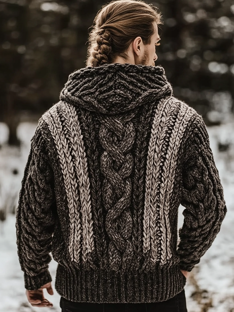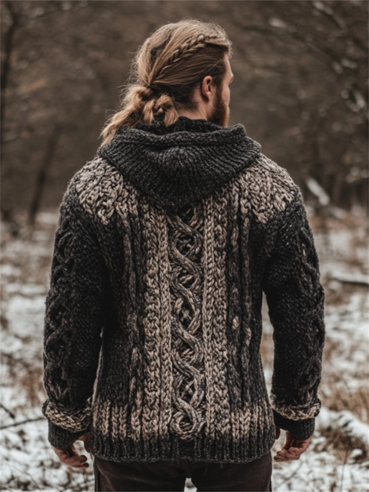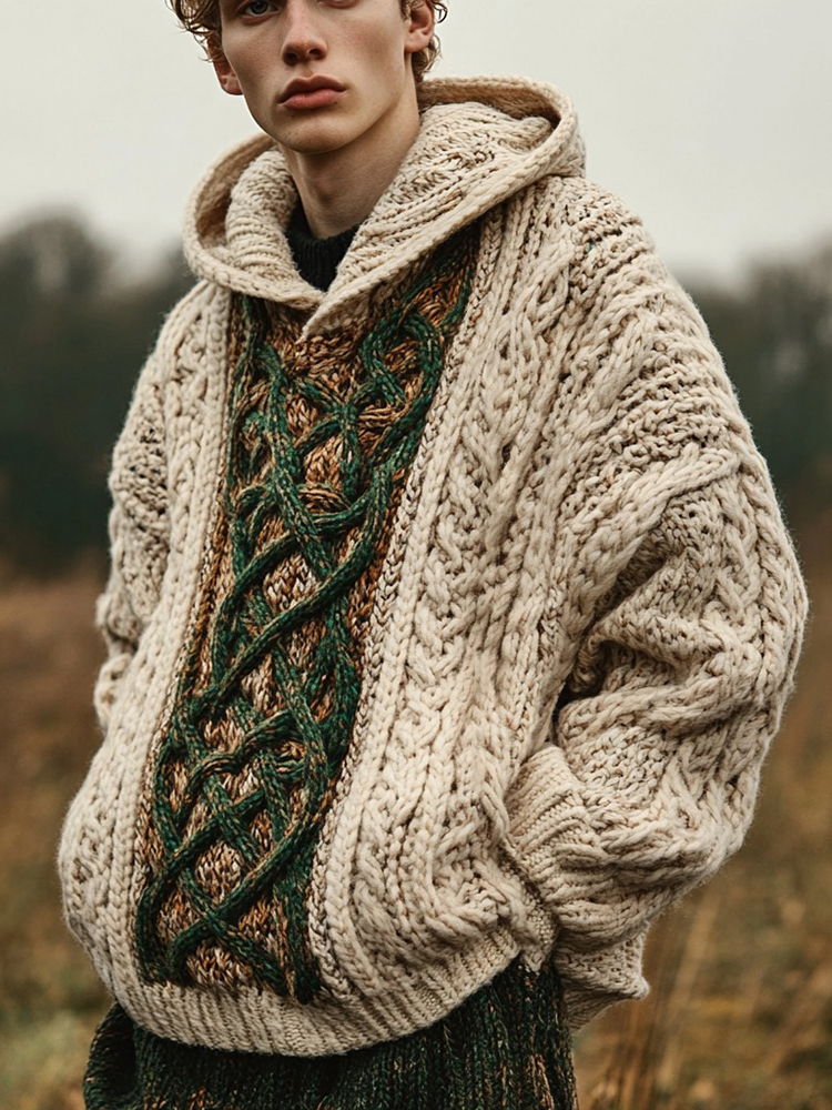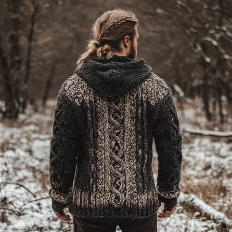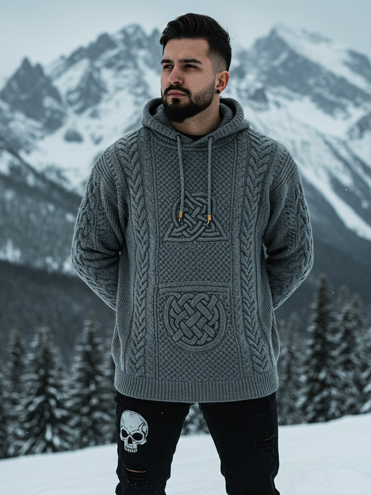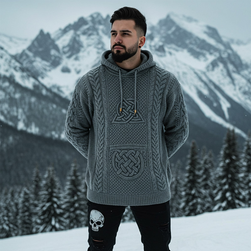Men's Vintage Celtic Knot Chunky Knit Cozy Hooded Sweater