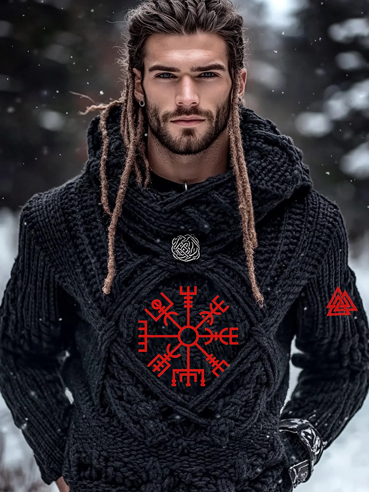 Men's Viking Inspired Embroidered Chunky Hooded Sweater