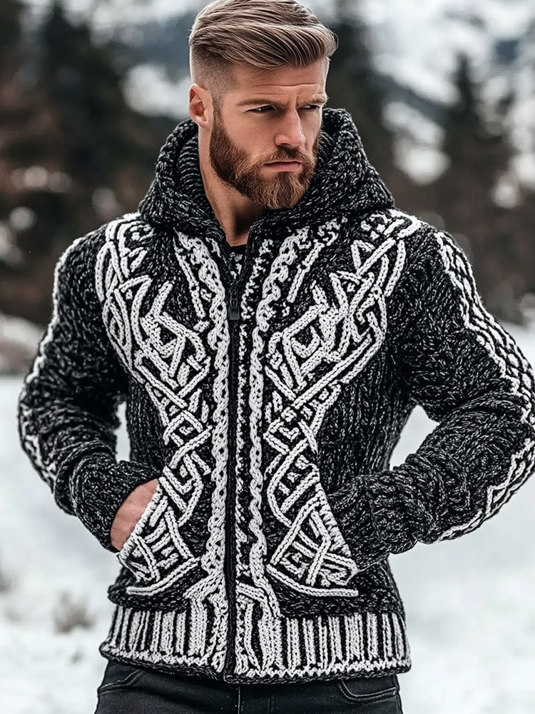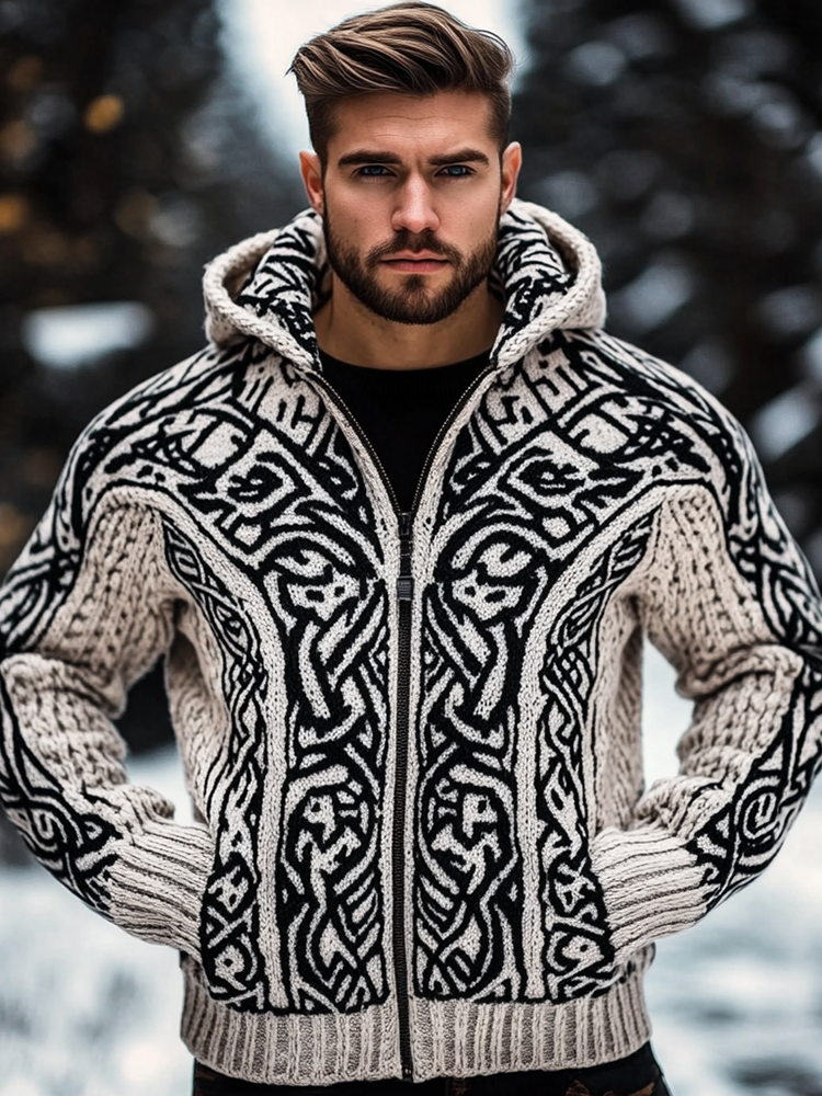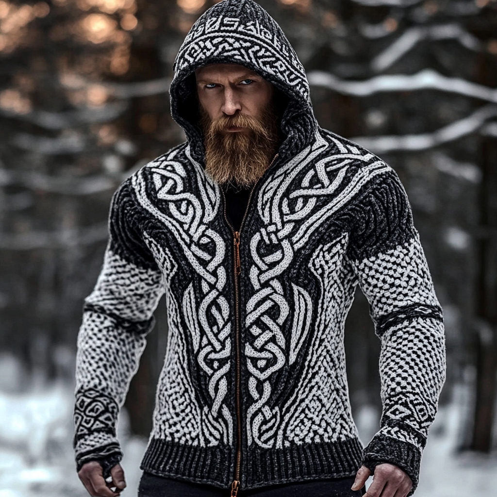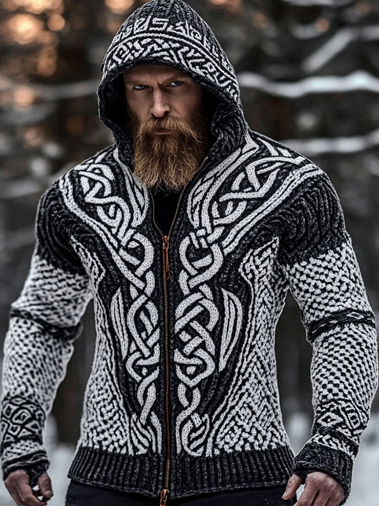 Men's Viking Celtic Pattern Cozy Knit Zip Hooded Sweater