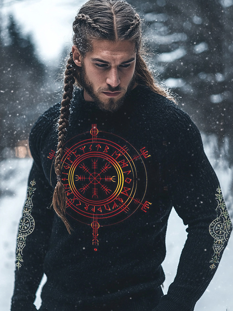 Vintage Viking Rune Knit Jacquard Crew Neck Sweater