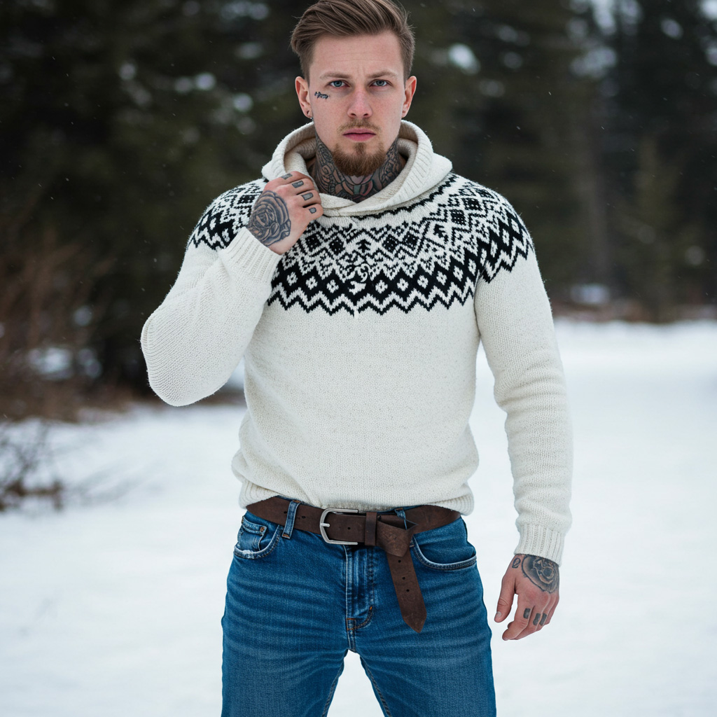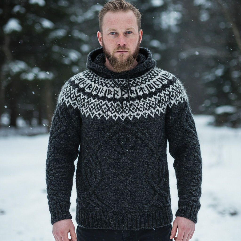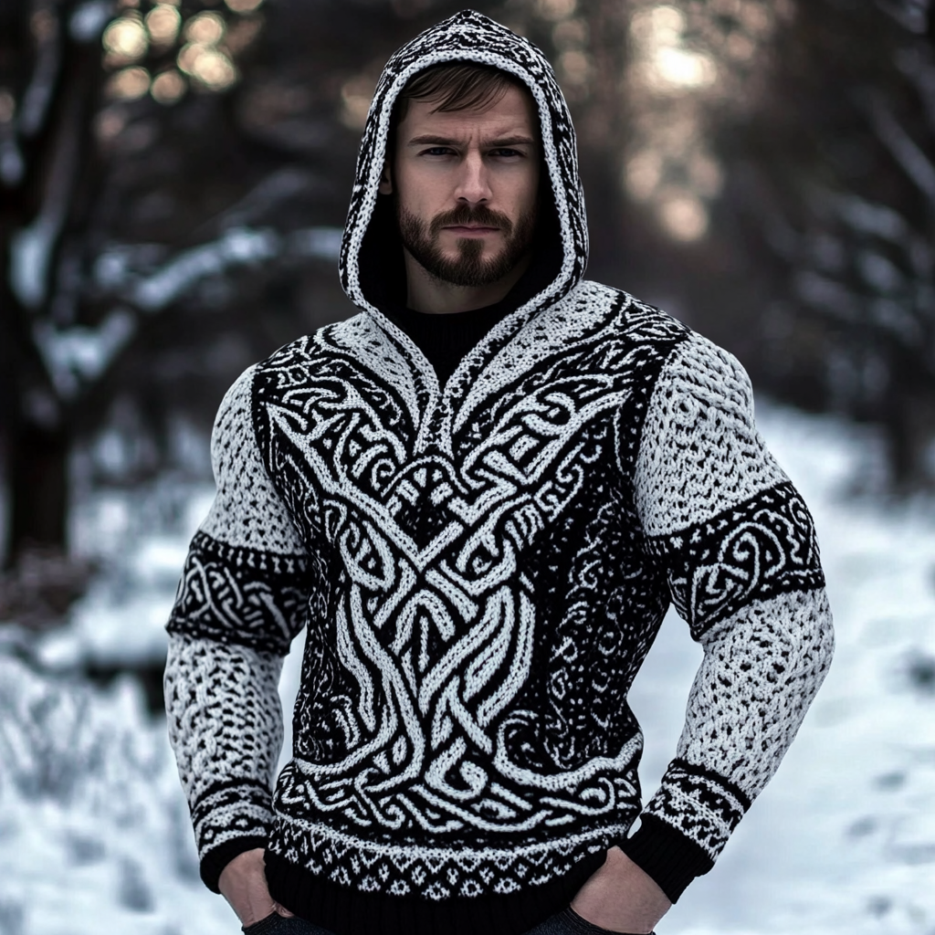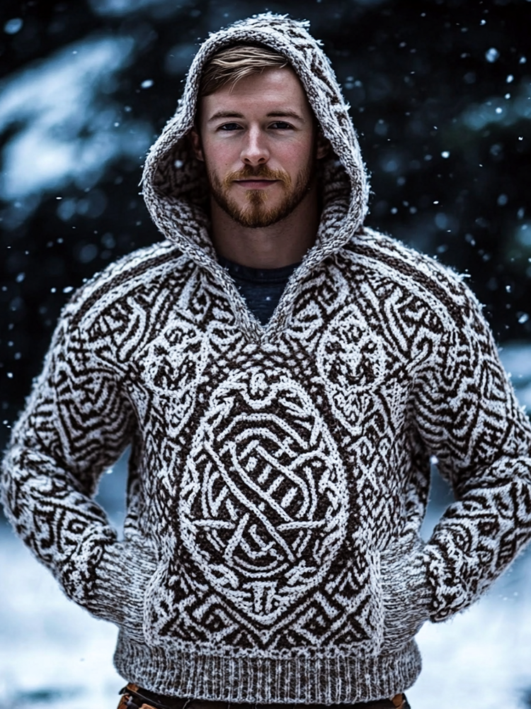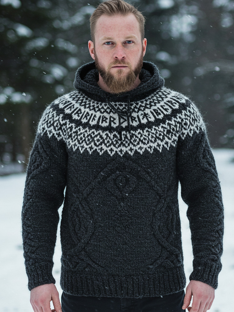 Men's Viking Inspired Celtic Jacquard Cozy Hooded Sweater