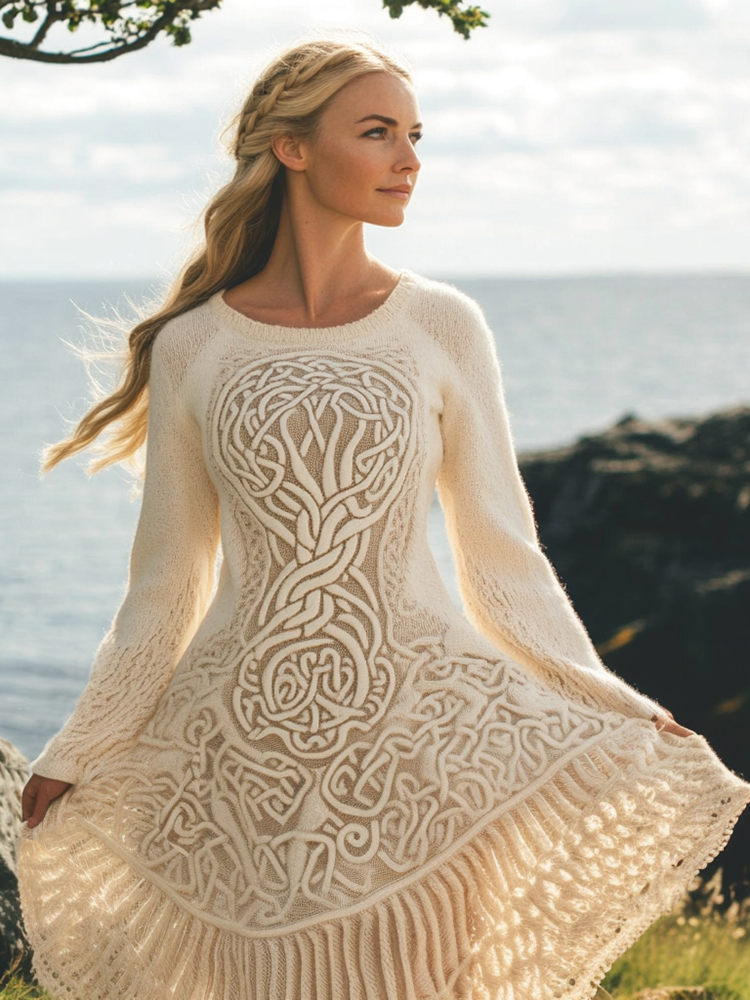 Women's Celtic Knot And Tree Of Life Long Sleeve Sweater Dress