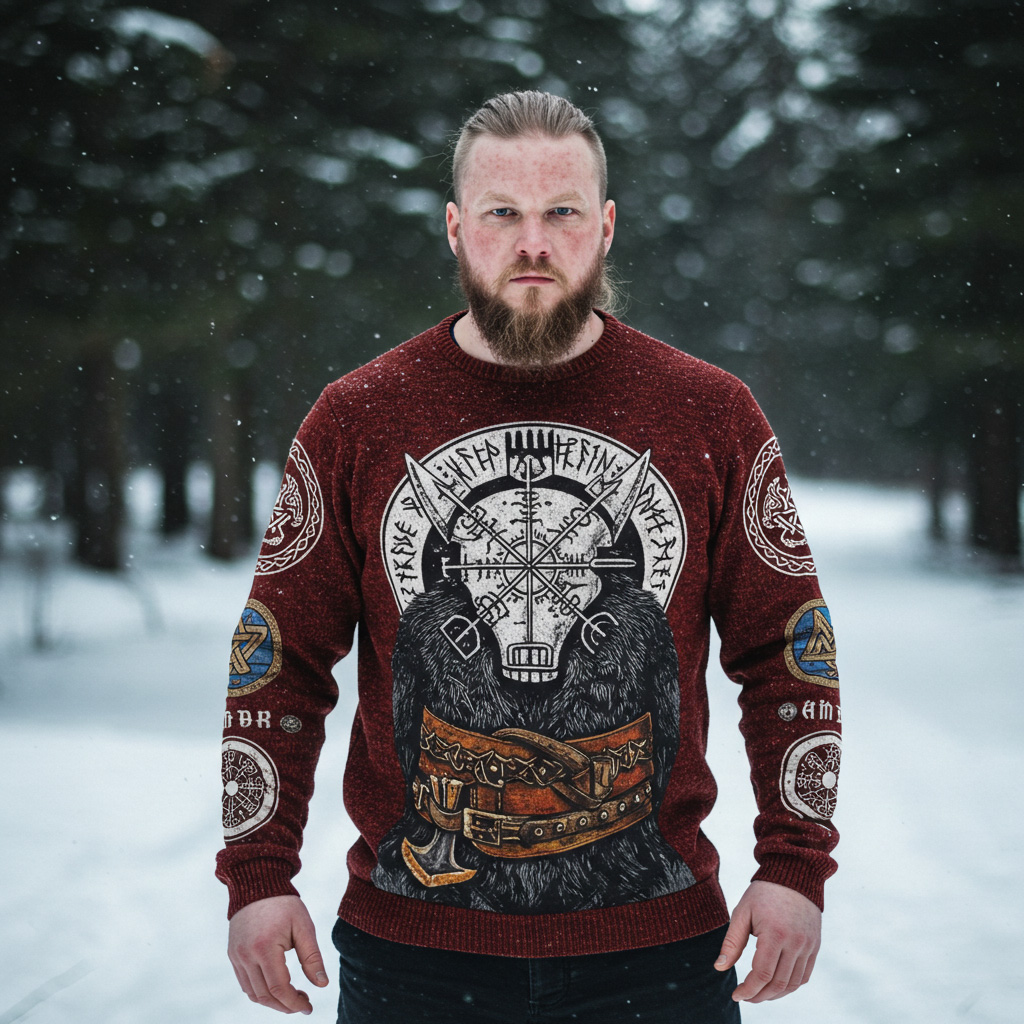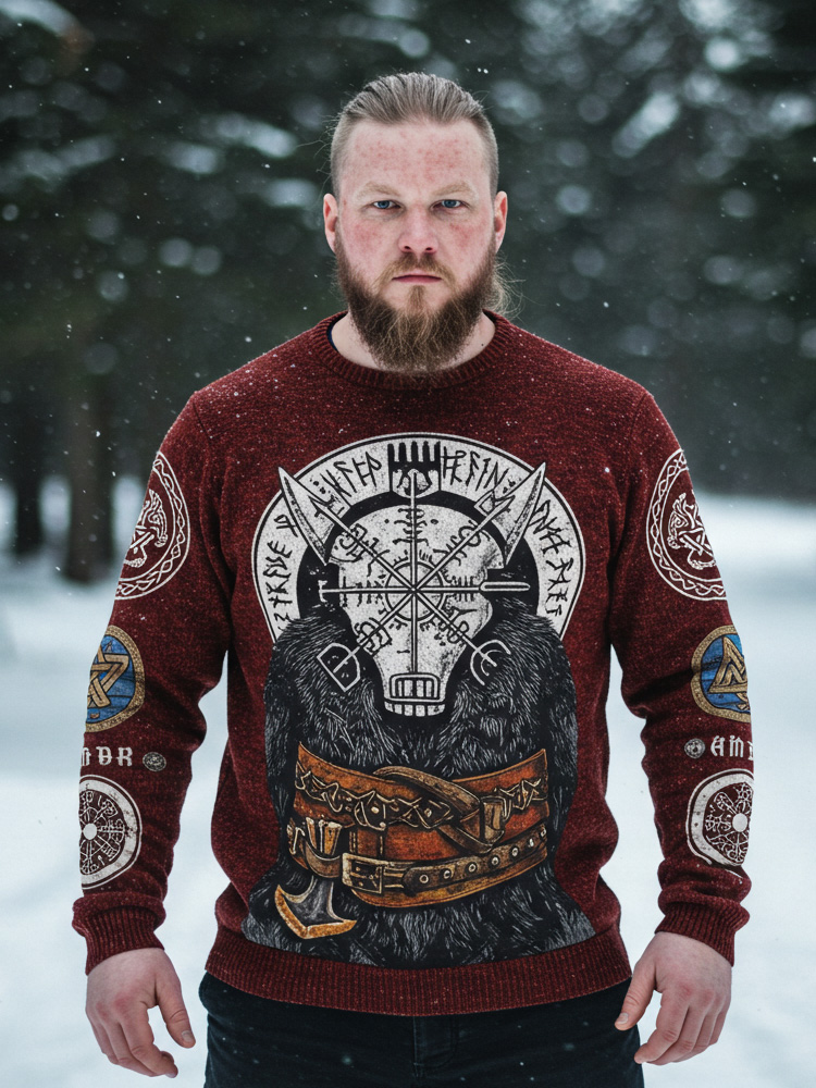 Men's Wolf Inspired Viking Celtic Jacquard Cozy Chunky Sweater