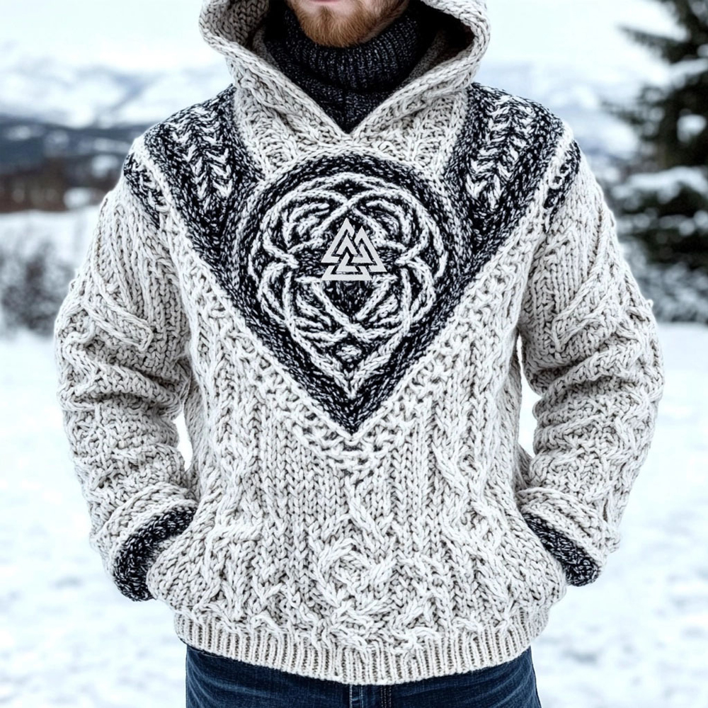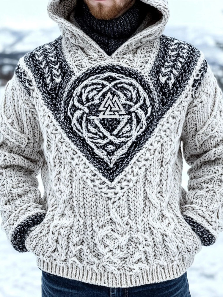 Men's Viking Inspired Celtic Jacquard Chunky Hooded Sweater