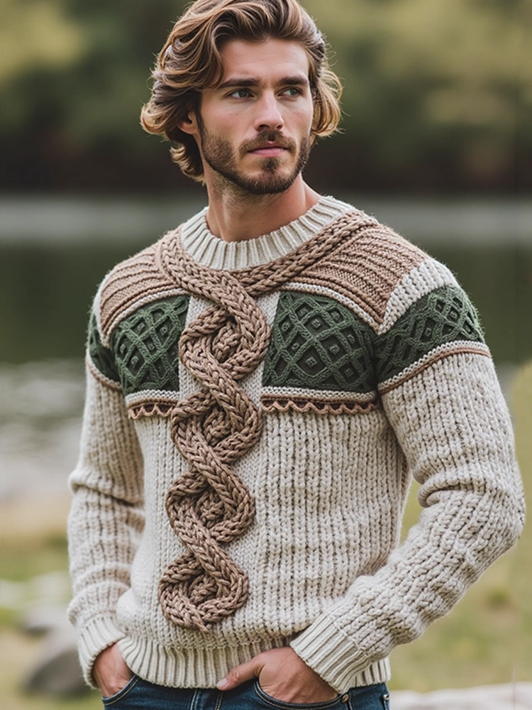 Men's Irish Inspired Jacquard Vintage Cozy Sweater