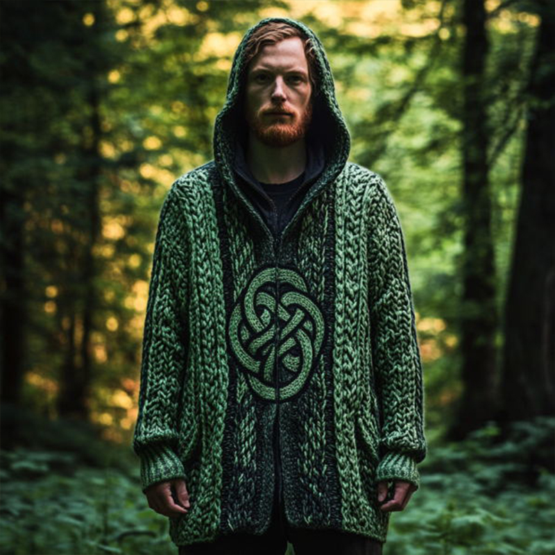 Men's Viking Celtic Inspired Cozy Chunky Hooded Cardigan