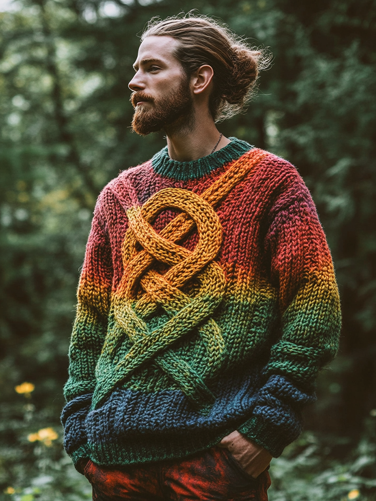 Men's Rainbow Irish Celtic Knotted Warmth Knit Jacquard Sweater