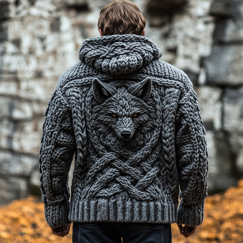 Men's Vintage Wolf Viking Celtic Chunky Cozy Hooded Sweater