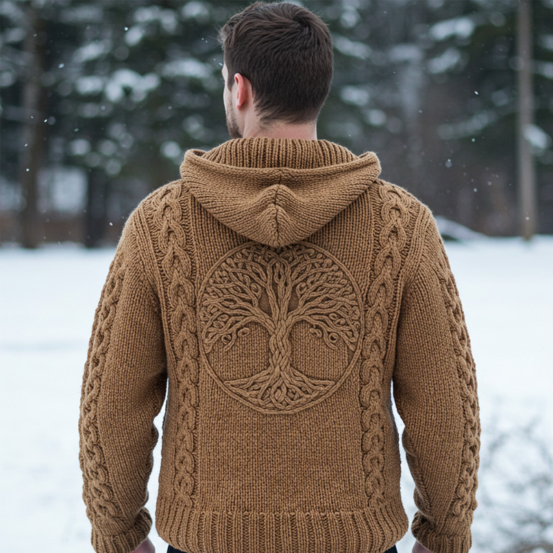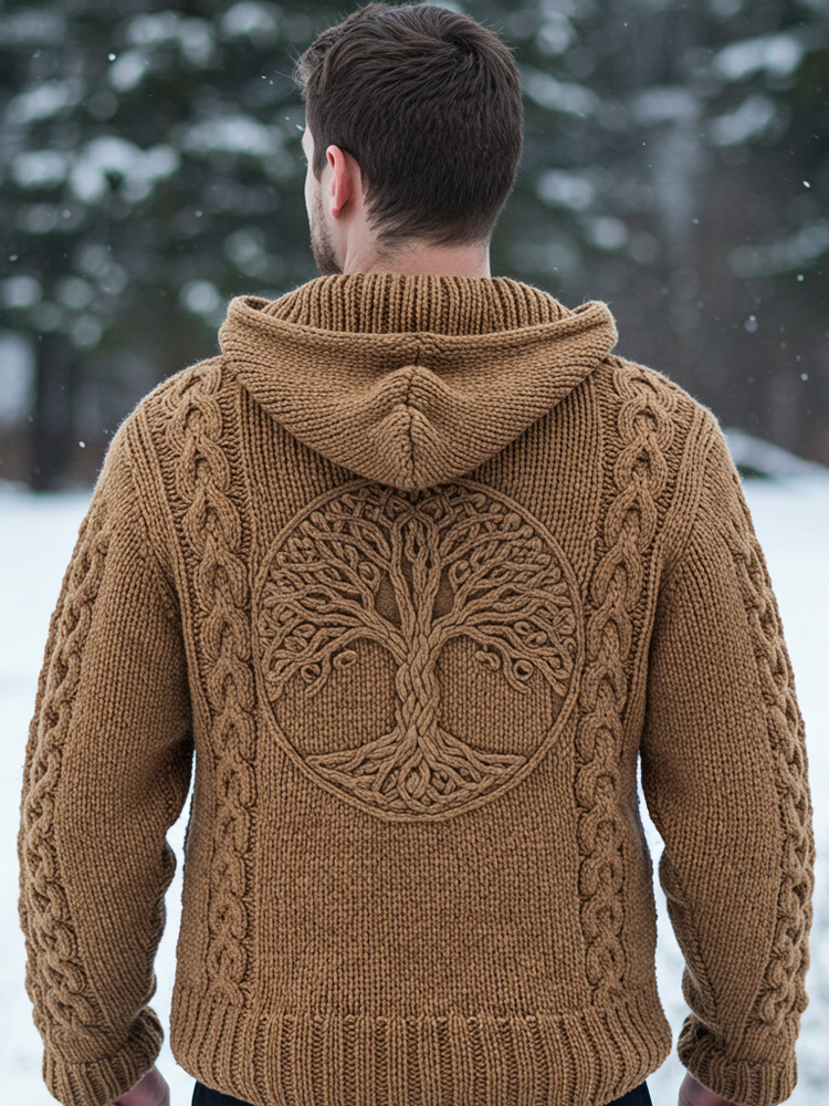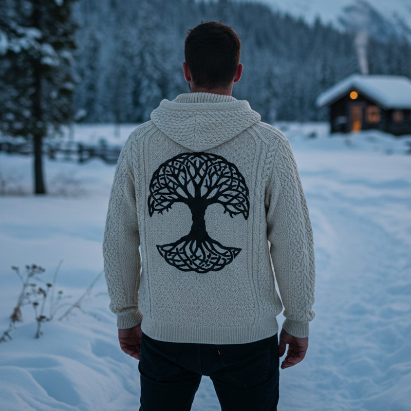 Men's Viking Tribal Tree Of Life Celtic Chunky Knit Hooded Sweater