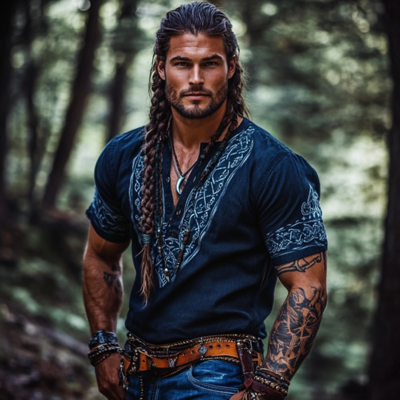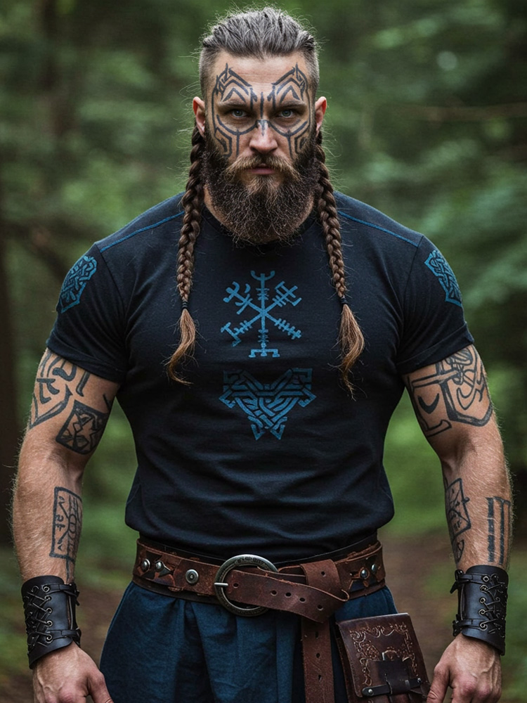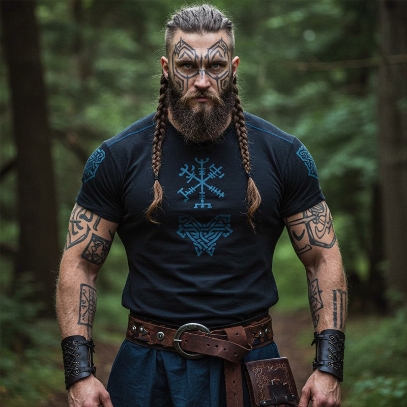 Vintage Viking Rune Print Round Neck Short Sleeve T-shirt