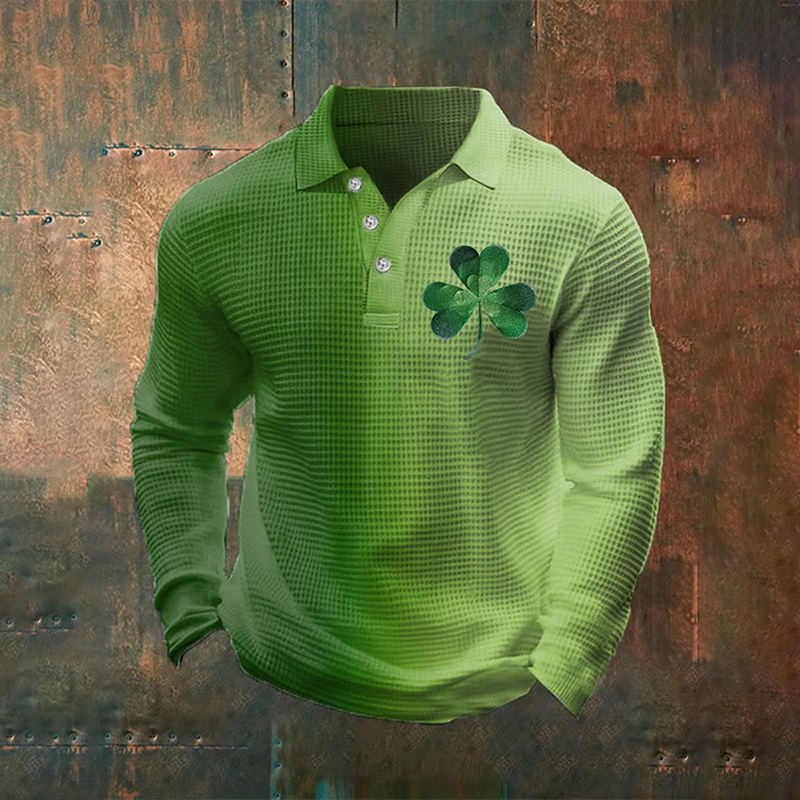 Men's St. Patrick's Day Print Waffle Long Sleeve Polo Shirt