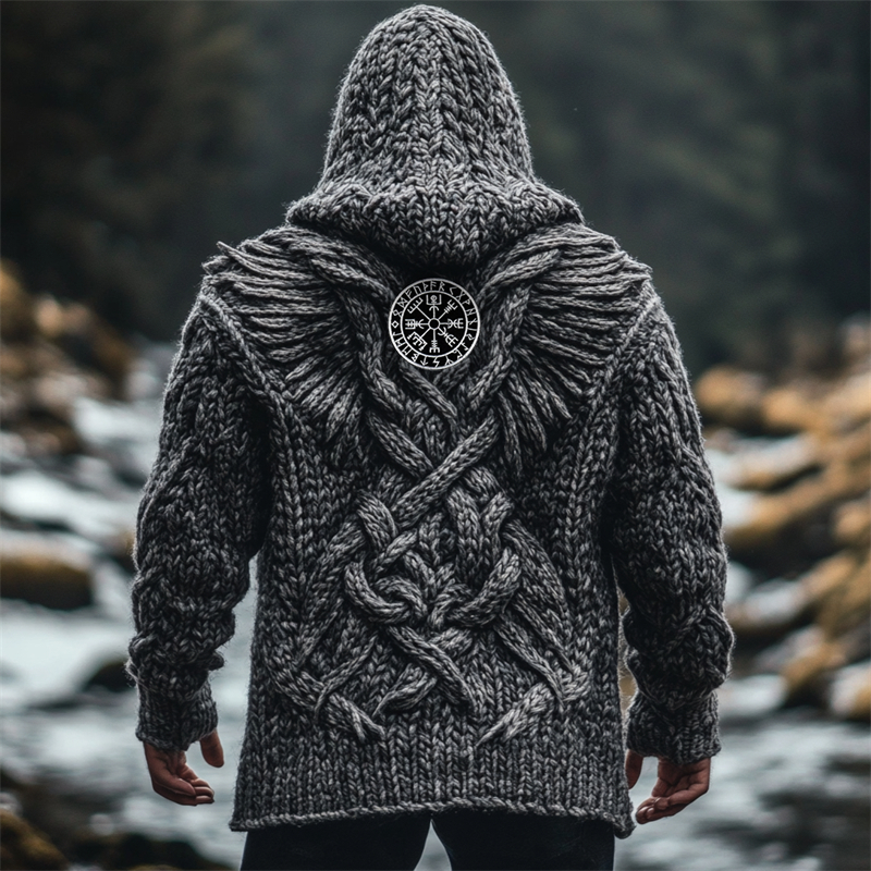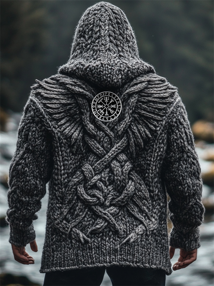 Men's Viking Vegvisir Dragon Wings Celtic Chunky Hooded Cardigan