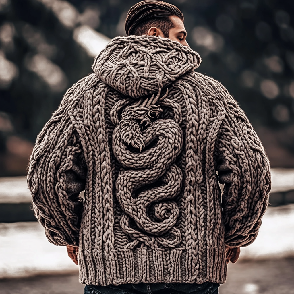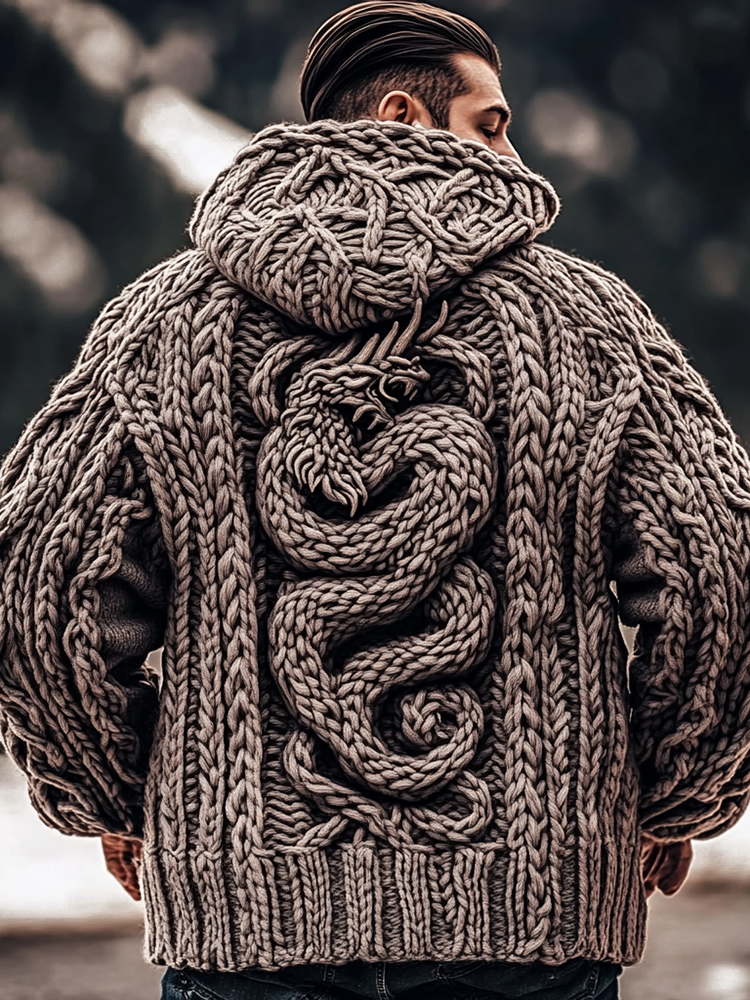 Men's Dragon Viking Celtic Chunky Knit Hooded Sweater