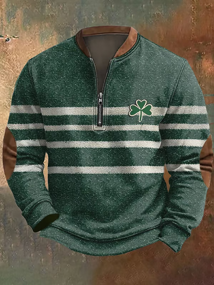 Men's St. Patrick's Day Striped Shamrock Printed Sweatshirt